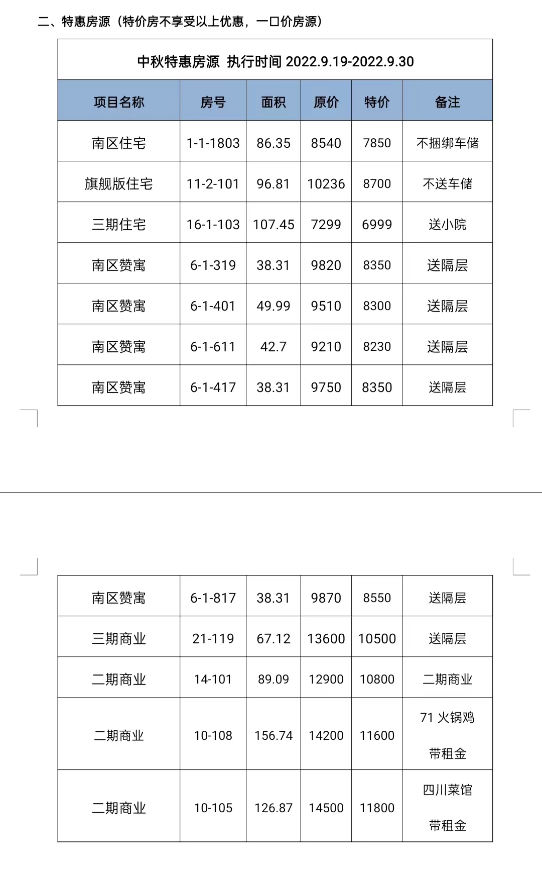 二、特惠房源(特價房不享受以上優惠,一口價房源)