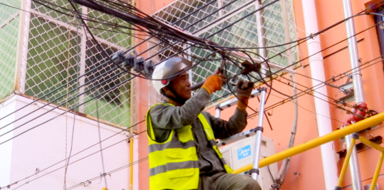 老舊小區“空中飛線”問題治理現場。趙鵬雅 攝