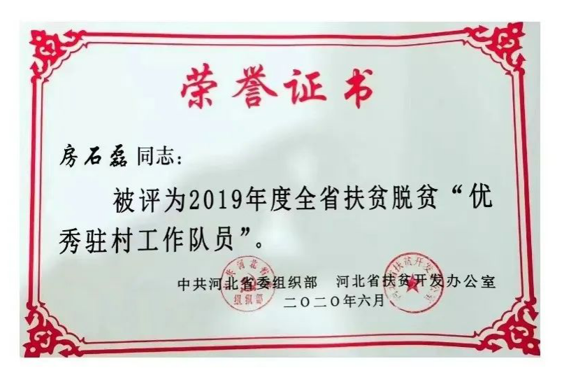 常言道:金杯銀杯不如老百姓的口碑。房石磊就是這樣一個(gè)退伍不褪色,始終保持著軍人優(yōu)良作風(fēng)的共產(chǎn)黨員,踏實(shí)干事,盡職盡責(zé),把一顆火熱的心獻(xiàn)給了扶貧及鄉(xiāng)村振興工作,獻(xiàn)給了南里謙村的老百姓。由于他在扶貧工作中的突出表現(xiàn),被評(píng)為2019年度全省扶貧脫貧“優(yōu)秀駐村工作隊(duì)員”、河北移動(dòng)“2019年度駐村精準(zhǔn)脫貧個(gè)人”、衡水移動(dòng)“優(yōu)秀共產(chǎn)黨員”等榮譽(yù)稱號(hào)。