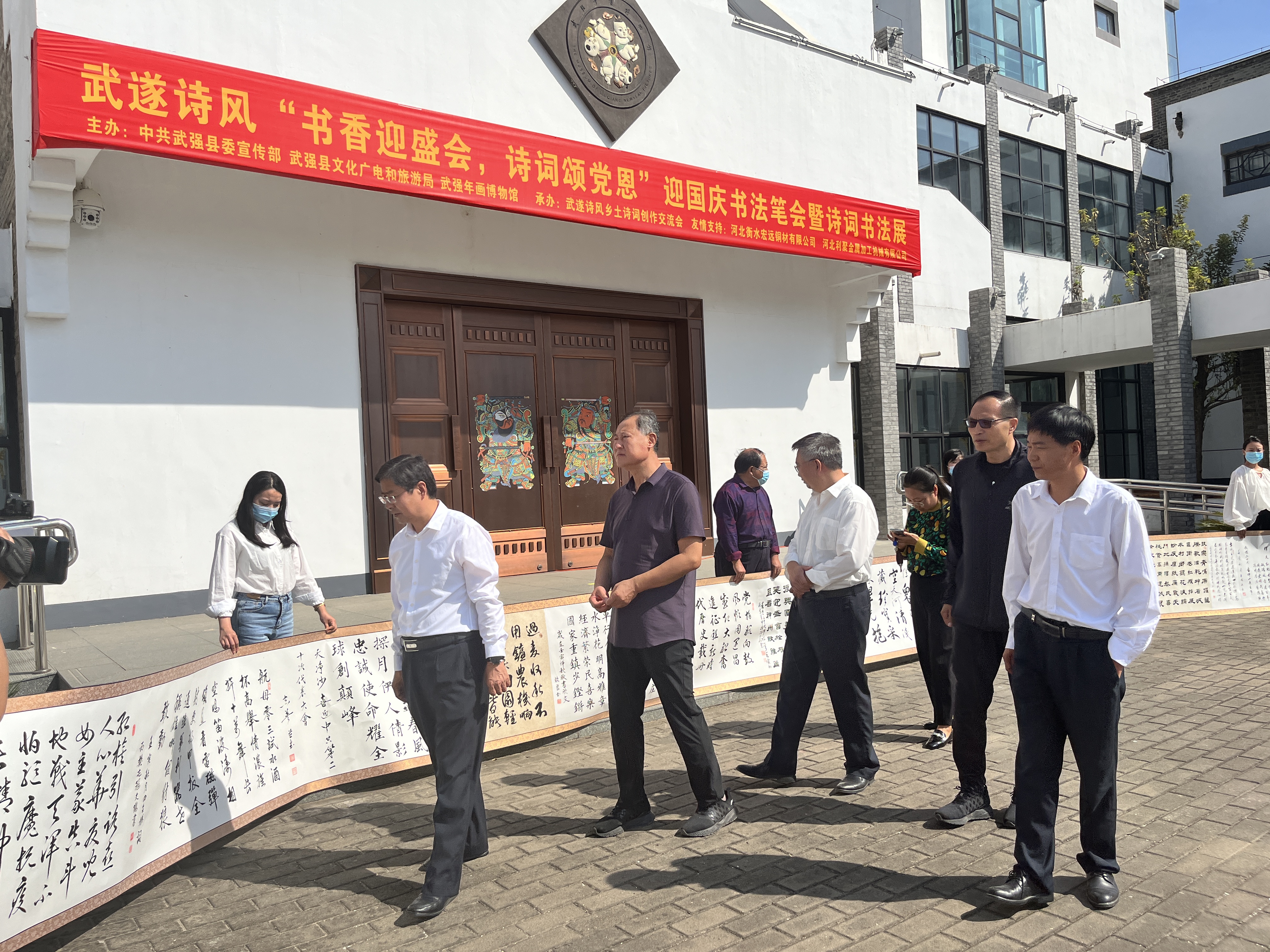 9月27日,武強年畫博物館舉辦了——喜迎二十大武遂詩風“書香迎盛會,詩詞頌黨恩”迎國慶書法筆會暨詩詞書法展。本次展覽由中共武強縣委宣傳部、武強縣文化廣電和旅游局、武強年畫博物館主辦,武遂詩風鄉土詩詞創作交流會承辦。