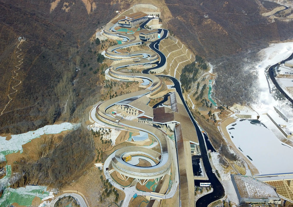 這是2021年1月19日拍攝的北京2022年冬奧會延慶賽區(qū)國家雪車雪橇中心(無人機照片)。新華社記者 張晨霖 攝