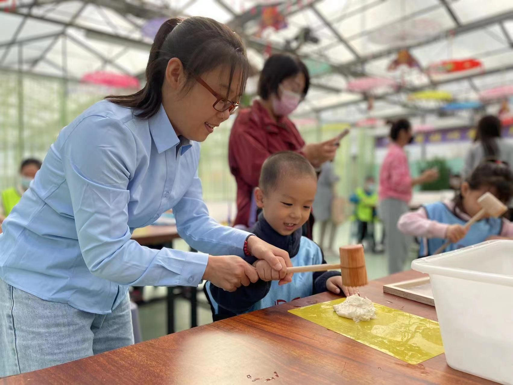 “同學(xué)們都知道,東漢時期,蔡倫改進了造紙術(shù),但大家知道怎么造紙么?”在手工操作室,科普之家的老師耐心講解,帶領(lǐng)孩子們體驗古法造紙。配紙漿、攪拌、平鋪紙漿、自然晾干……一道道工序下來,一張張古法紙就在孩子們手中誕生了。“原來,制作一張紙需要這么多流程。”“可不是,以后咱們可不能浪費紙張了。”這種寓教于樂的方式贏得了家長們的充分肯定,大家都說孩子們不僅充分了解、親近了中國傳統(tǒng)文化,同時也明白了紙張的來之不易,學(xué)會了珍惜勞動成果,培養(yǎng)了勞動意識和環(huán)保觀念。
