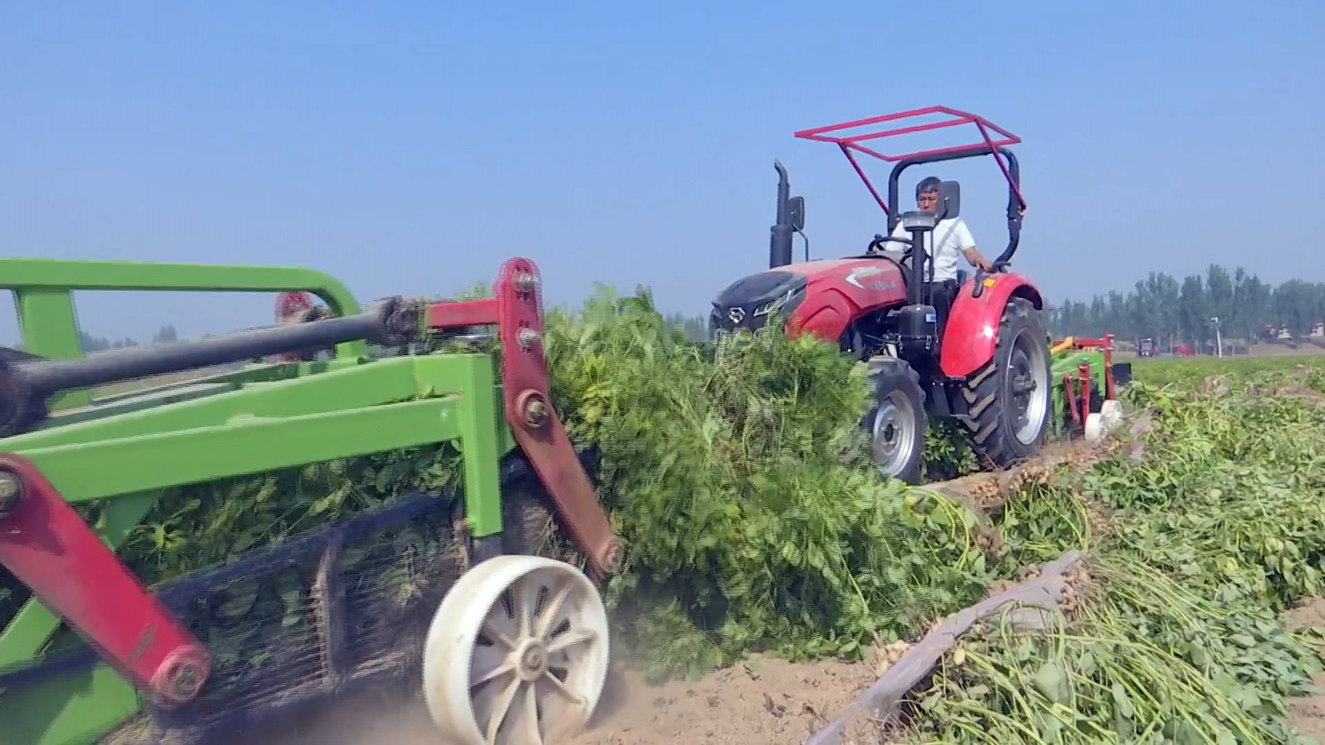 近日,在衡水市安平縣大何莊鄉(xiāng)報子營村的高油酸花生種植基地,花生收獲機來回穿梭忙著收獲花生。據(jù)悉,2022年,當(dāng)?shù)孛慨€高油酸花生產(chǎn)量能達到1000斤左右,豐收的幸福寫在農(nóng)民的笑臉上。