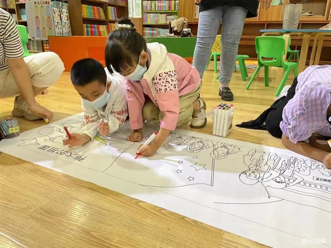 小朋友們用水彩筆為畫卷涂上顏色。冀州區(qū)新華書店供圖