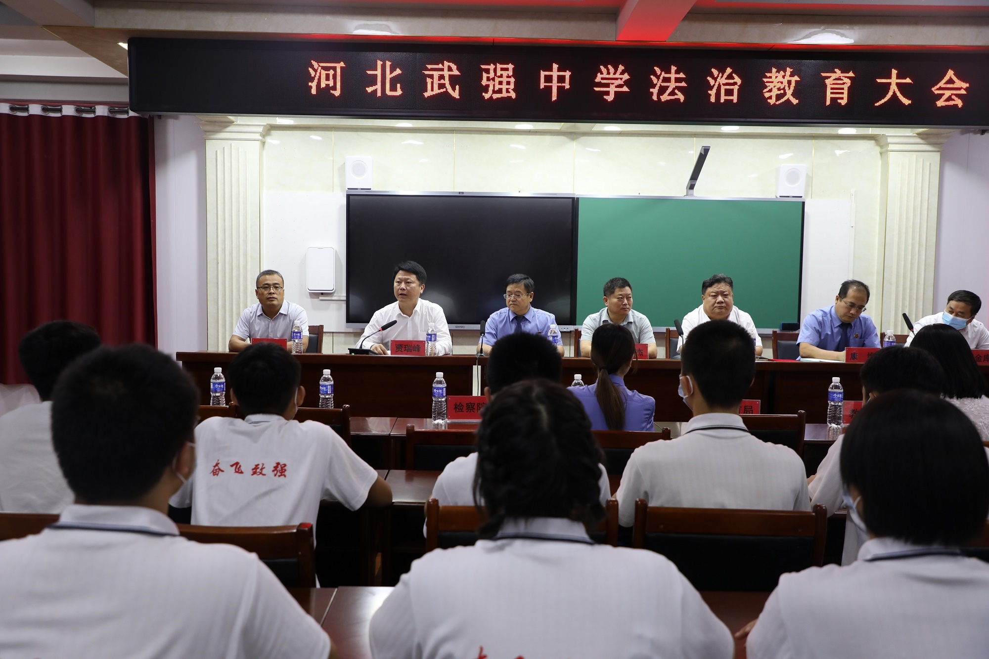活動現場,武強中學為武強縣人民檢察院黨支部書記梁國庫頒發了“法治副校長”聘書。梁國庫結合未成年人檢察工作實際,通過以案說法的方式,為同學們上了一堂生動的法治課。隨后,檢校雙方共同參觀了武強中學法治教育基地。