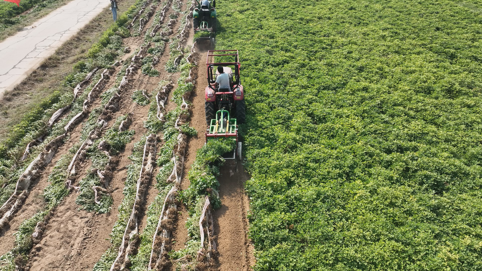 安平縣報(bào)子營(yíng)村高油酸花生收獲現(xiàn)場(chǎng)。李金鳳 攝