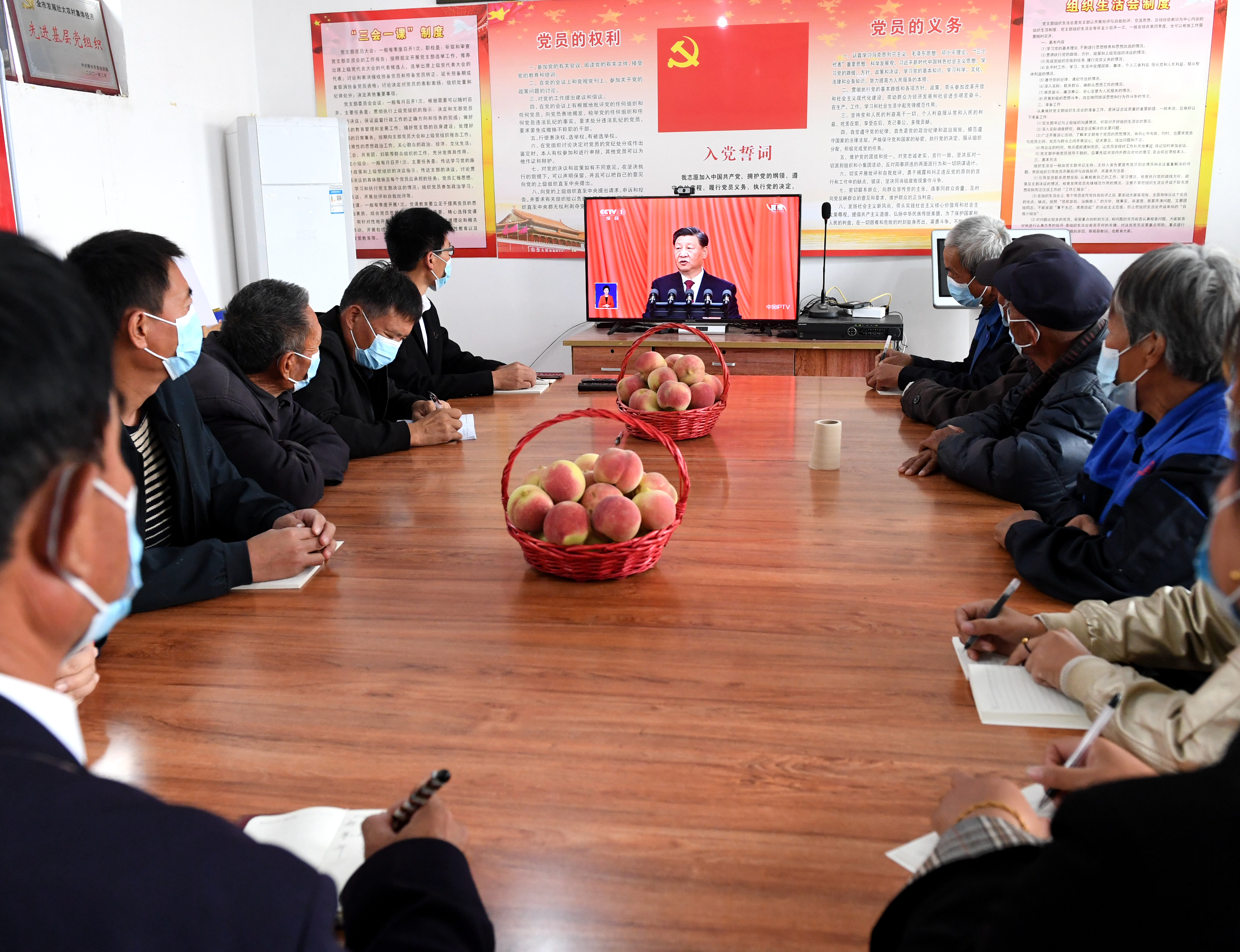 16日上午,在阜城縣崔家廟鎮張家橋村村委會會議室內,該村黨支部書記張勇組織黨員干部、村民們共同收看黨的二十大開幕直播,感受團結、奮進的時代脈動,大家表示藍圖已繪就,未來將齊頭共奮進。