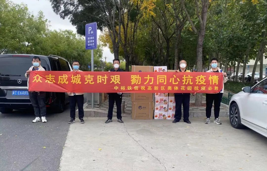 10月16日下午,中裕鐵信交通科技股份有限公司、忠義餐飲有限公司、河北五金機電商會向高新區捐贈了消毒液、防護服、口罩、方便面、火腿腸等價值2.61萬元的抗疫物資。