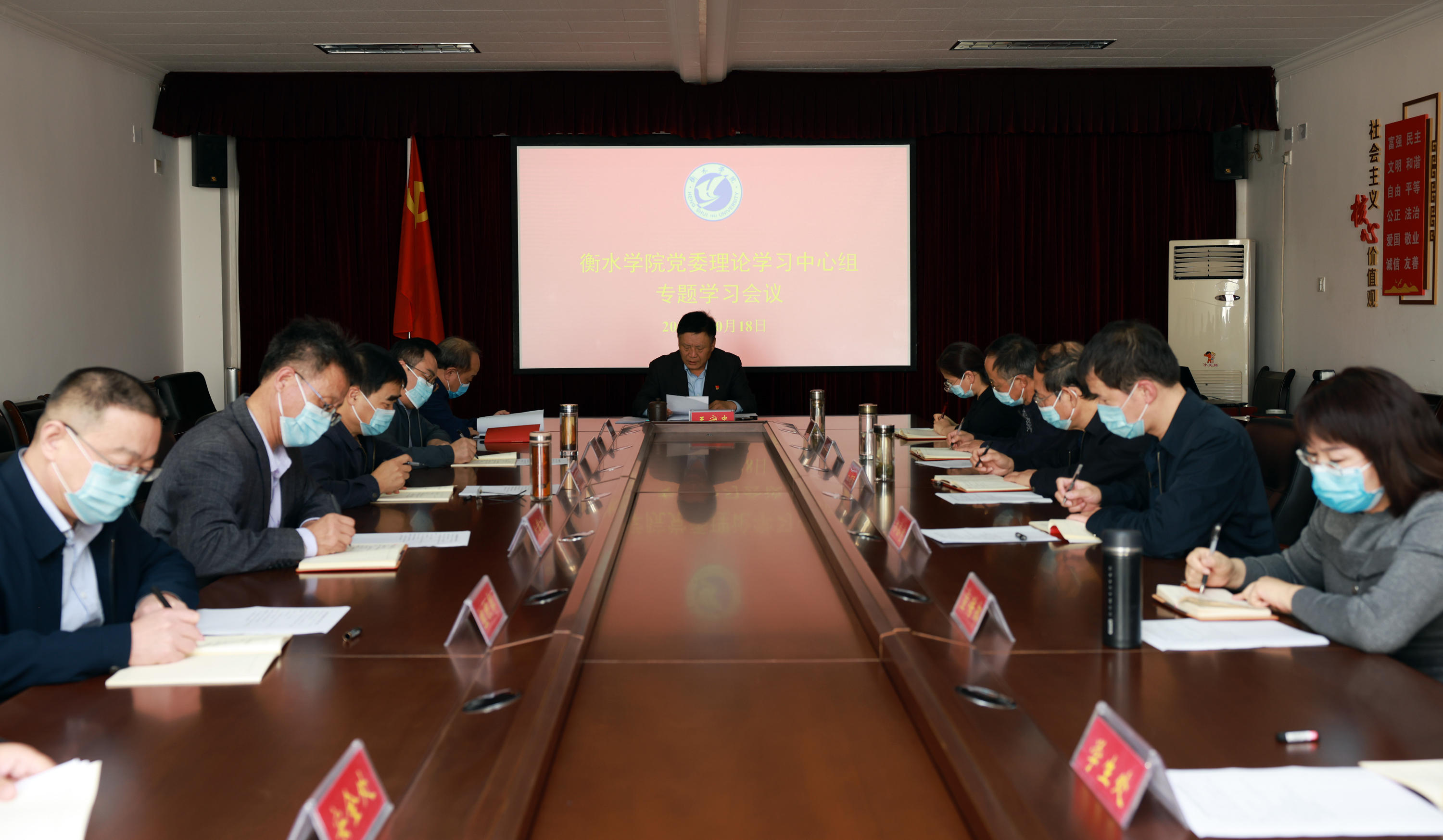 10月18日下午,衡水學(xué)院召開黨委理論學(xué)習(xí)中心組專題學(xué)習(xí)會(huì)議,傳達(dá)學(xué)習(xí)黨的二十大精神,要求全院教職員工深刻領(lǐng)會(huì)二十大報(bào)告的核心要義和精髓實(shí)質(zhì),緊密把握時(shí)代發(fā)展大勢(shì)和高等教育發(fā)展大勢(shì),以建設(shè)特色鮮明的應(yīng)用技術(shù)大學(xué)為目標(biāo),埋頭苦干、奮勇前進(jìn),努力培養(yǎng)堪當(dāng)民族復(fù)興大任的時(shí)代新人,推動(dòng)教育高質(zhì)量發(fā)展。