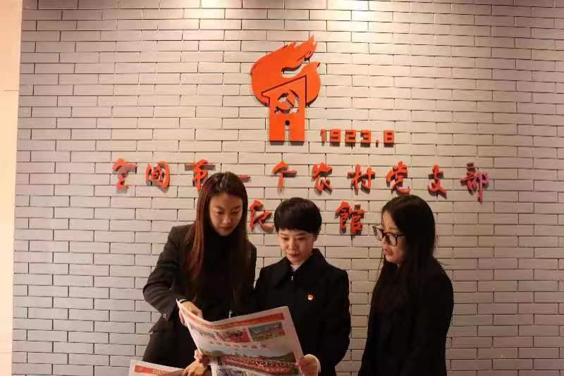 安平縣臺城村全國第一個農村黨支部工作人員學習黨的二十大報告。