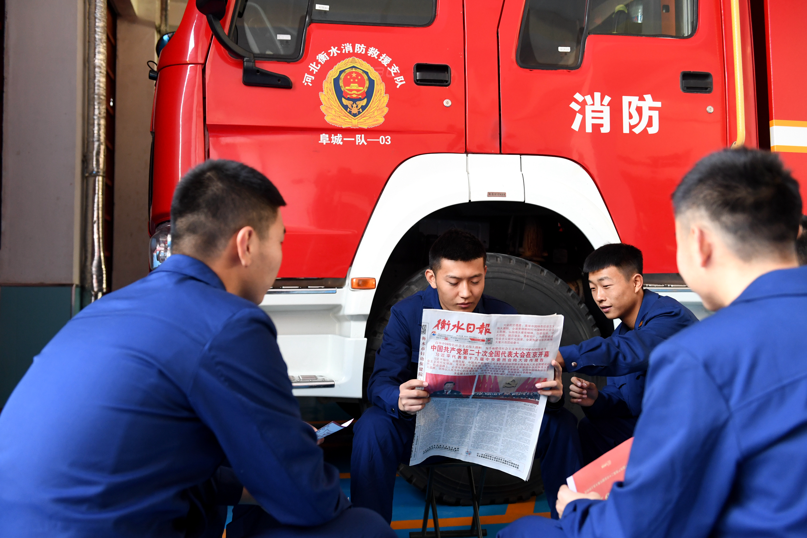 阜城縣消防救援支隊戰斗一班學習黨的二十大報告。