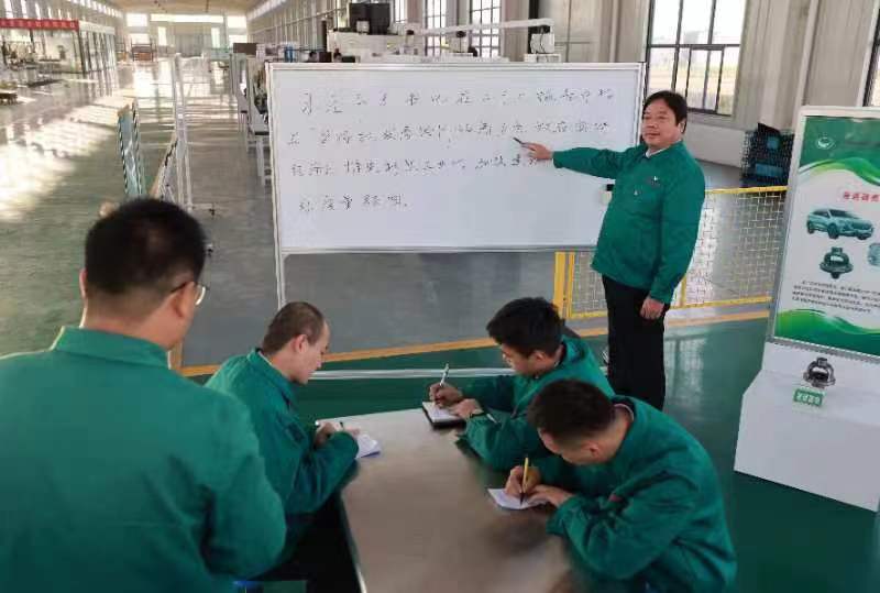春風實業集團河北隆春通用設備制造有限責任公司工作人員集中學習黨的二十大報告。