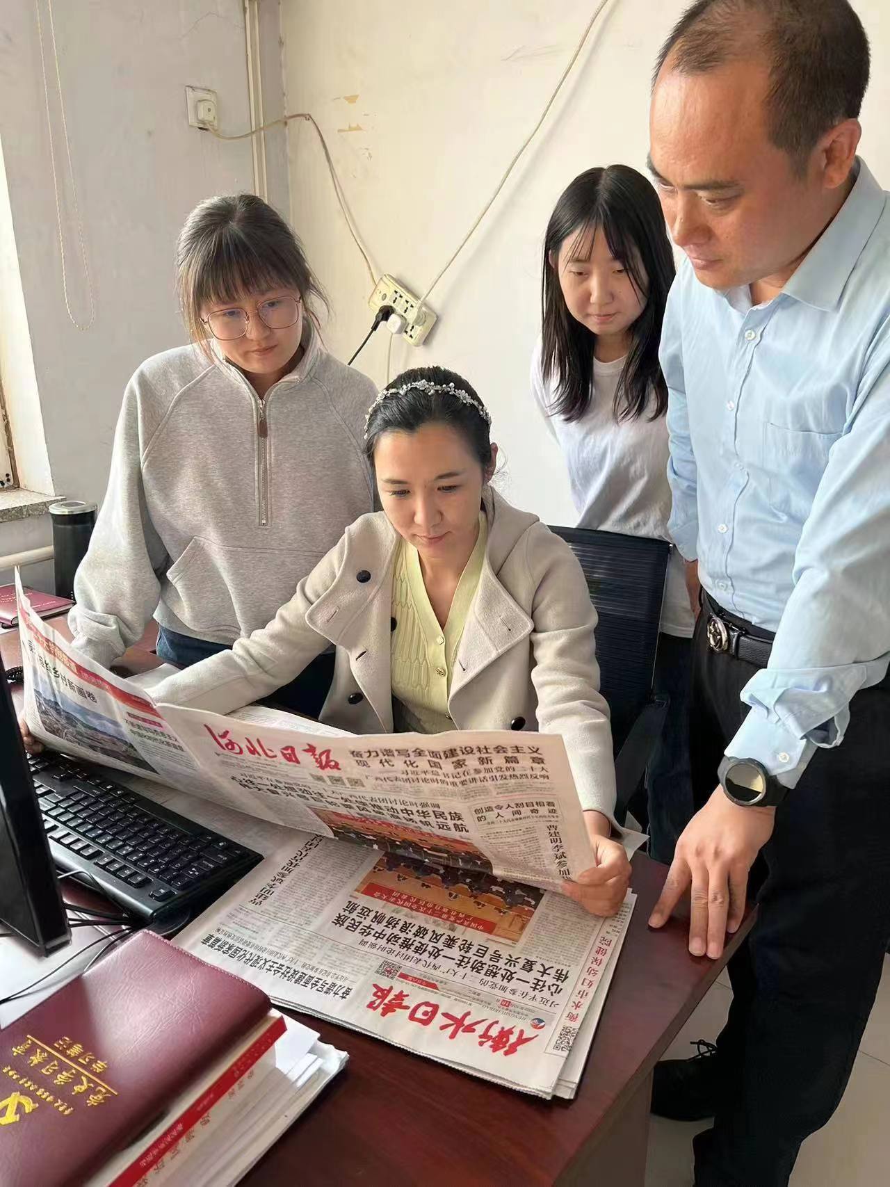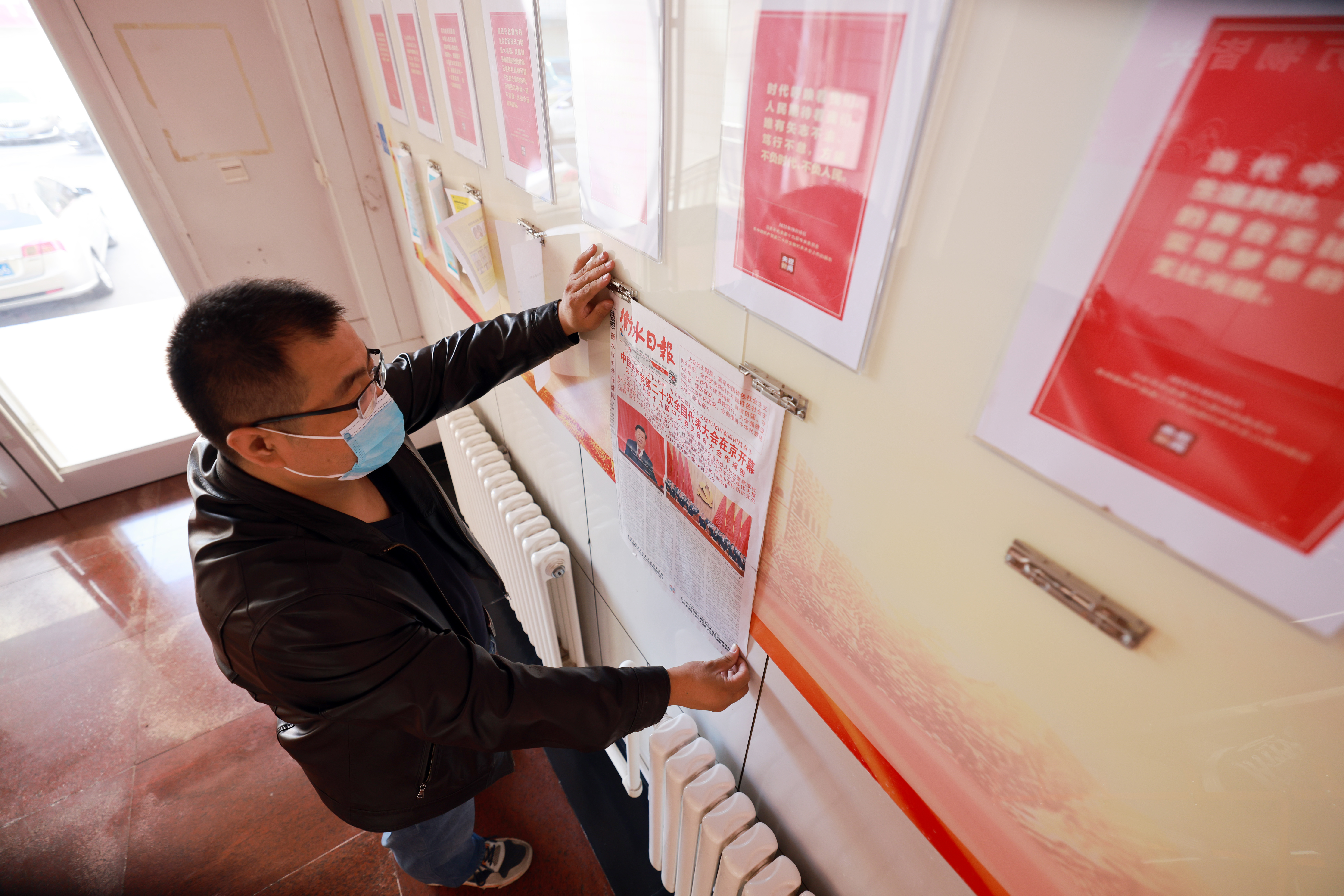 衡水市水利局工作人員將刊有黨的二十大內容的《衡水日報》張貼到政務公開欄供大家閱讀。