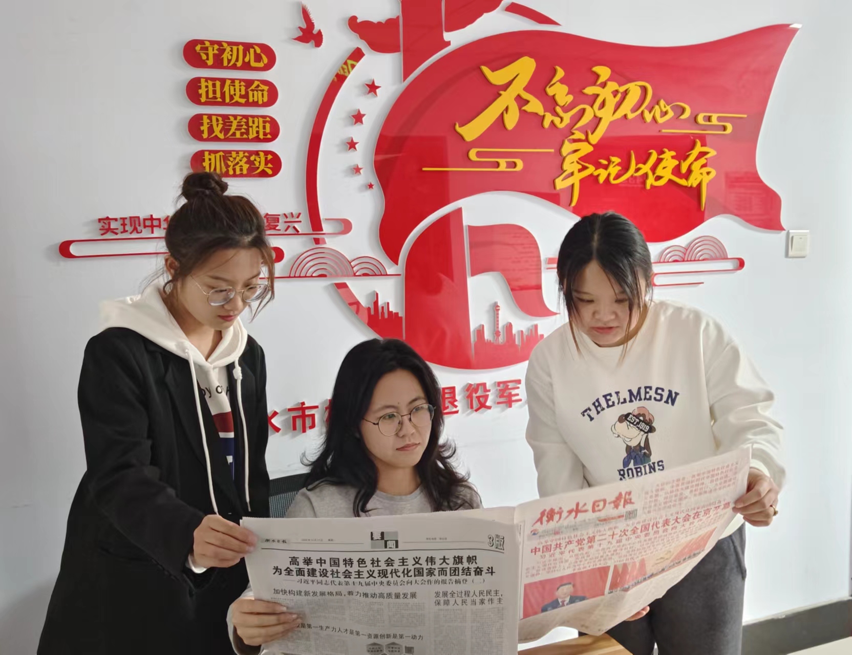 桃城區退役軍人事務局工作人員學習黨的二十大報告。