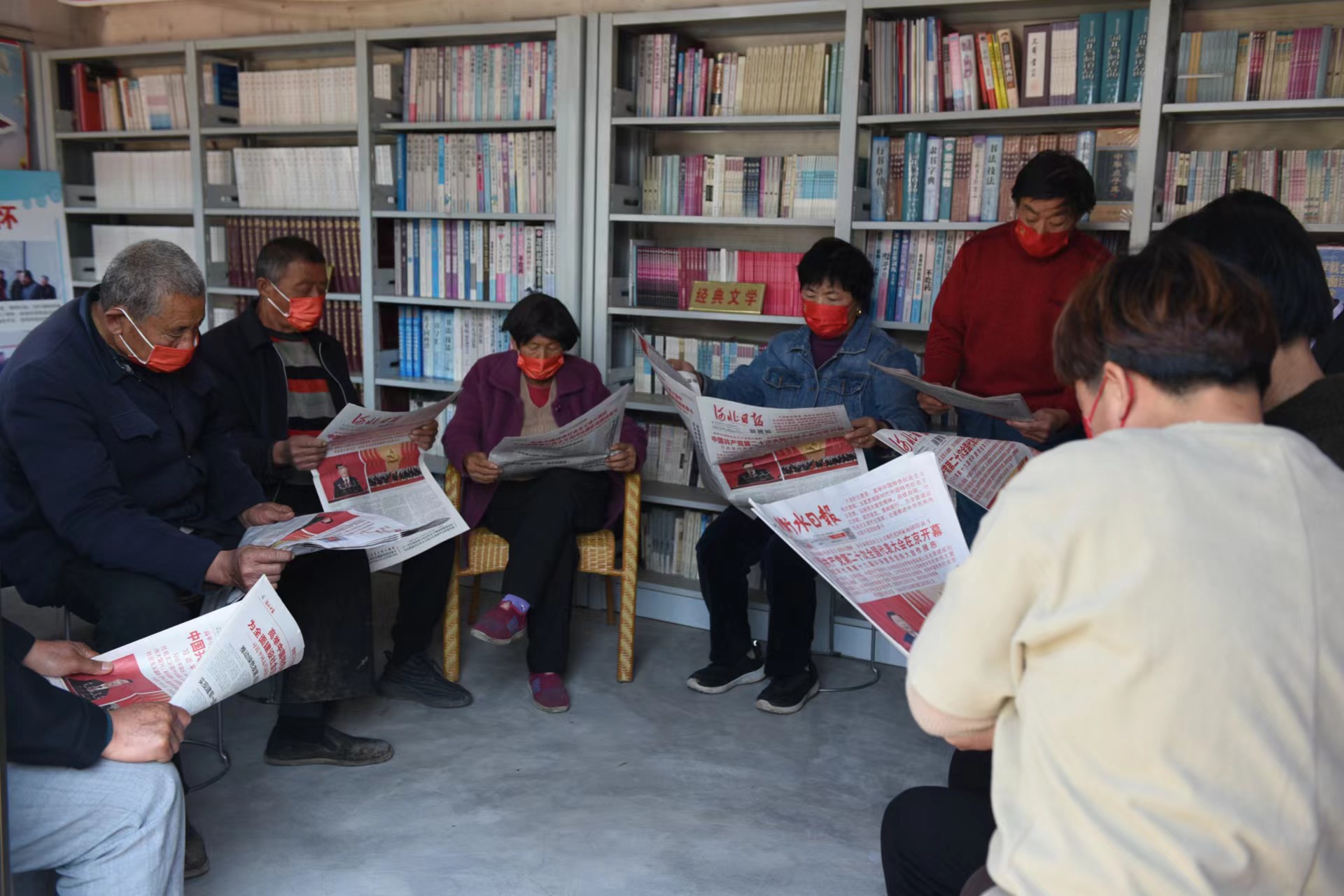 武邑縣南云齊村村民利用農閑時間認真學習黨的二十大報告。