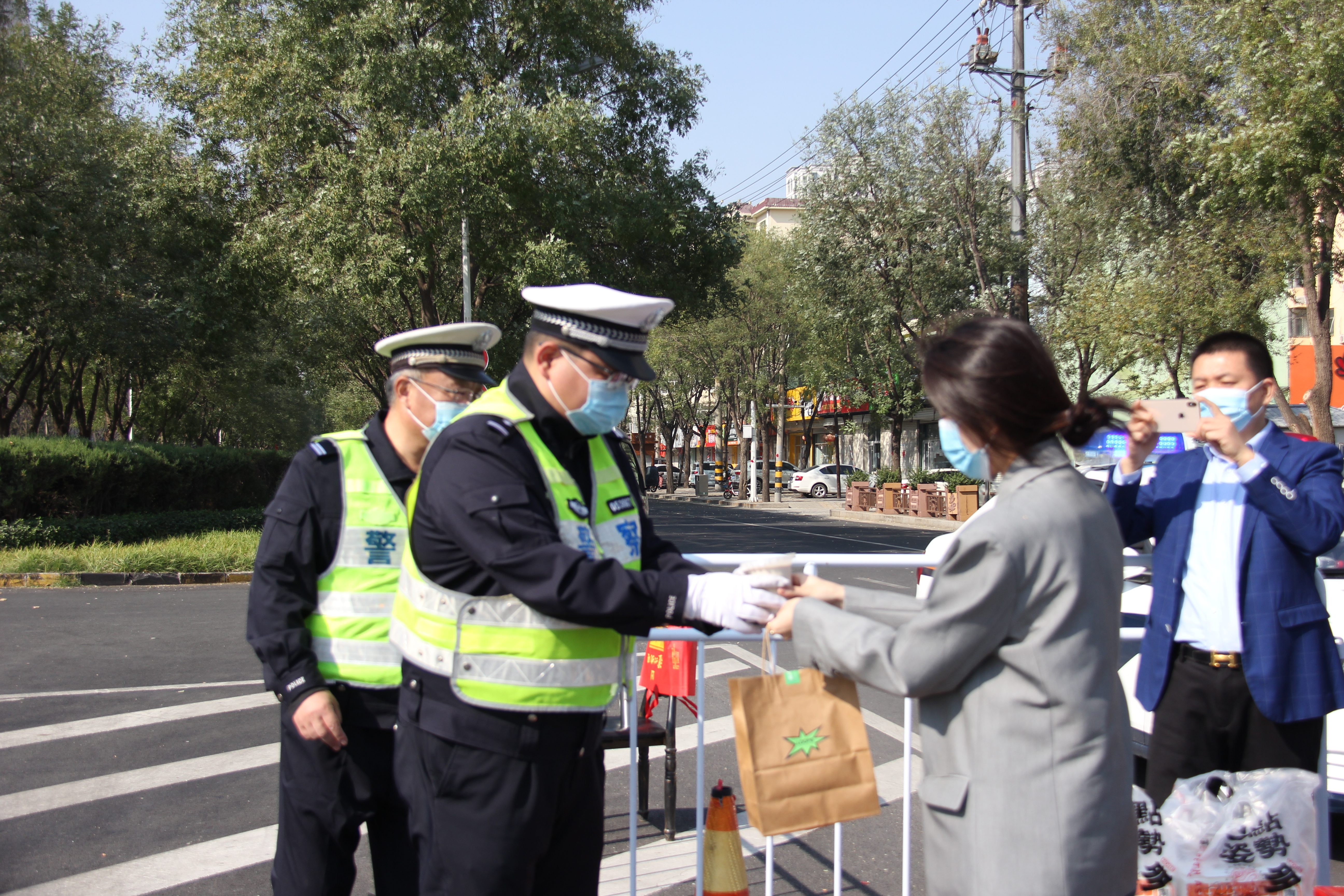 “疫情面前,他們傾情守護,實在太辛苦了。”看著馬美娜等人工作的身影,衡水江蘇商會會長毛明安等人由衷地表示敬佩,“在這個特殊時期,我們也想奉獻(xiàn)一份微薄之力,為一線的交警們送去關(guān)愛。” 與此同時,衡水家風(fēng)家教文化館館長李麗芳和工作人員們也表達(dá)了同樣的想法,大家積極籌措方便面、礦泉水、糕點、熱飲咖啡等物資,向戰(zhàn)斗在疫情防控一線的工作人員表達(dá)敬意。眾人隨后又來到勝利路與前進(jìn)大街交叉口,為同樣在路口堅守的交警們送上暖心物資,表示誠摯的慰問以及與交警同心共抗疫情的決心。