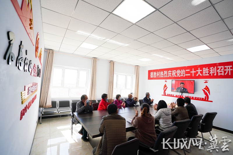 德勝村黨員干部群眾代表認真收看中國共產黨第二十次全國代表大會開幕會。長城網·冀云客戶端記者 鄭世繁 攝