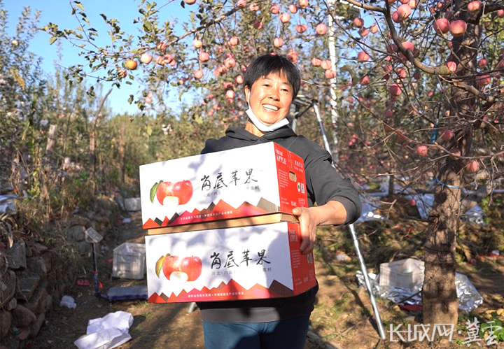 內丘縣崗底村村民劉海燕在果園忙著為客戶搬運蘋果。長城網·冀云客戶端記者 郭碩 攝
