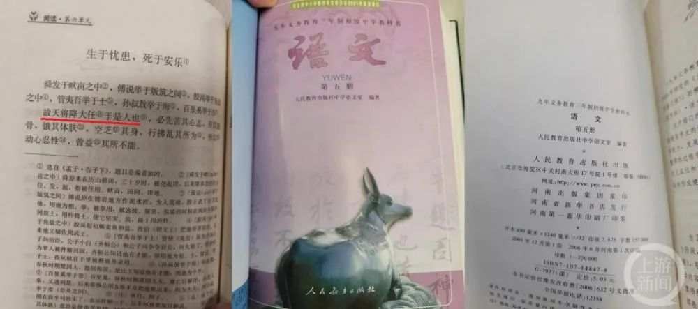 ▲人教社2001年版初中語文教科書。圖片來源/網絡