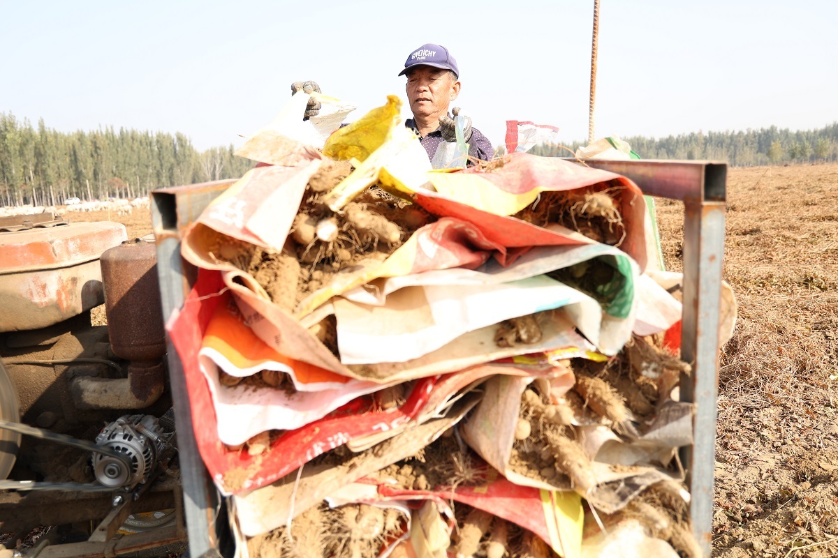 農(nóng)民在田間采收麻山藥。薛騰飛 攝