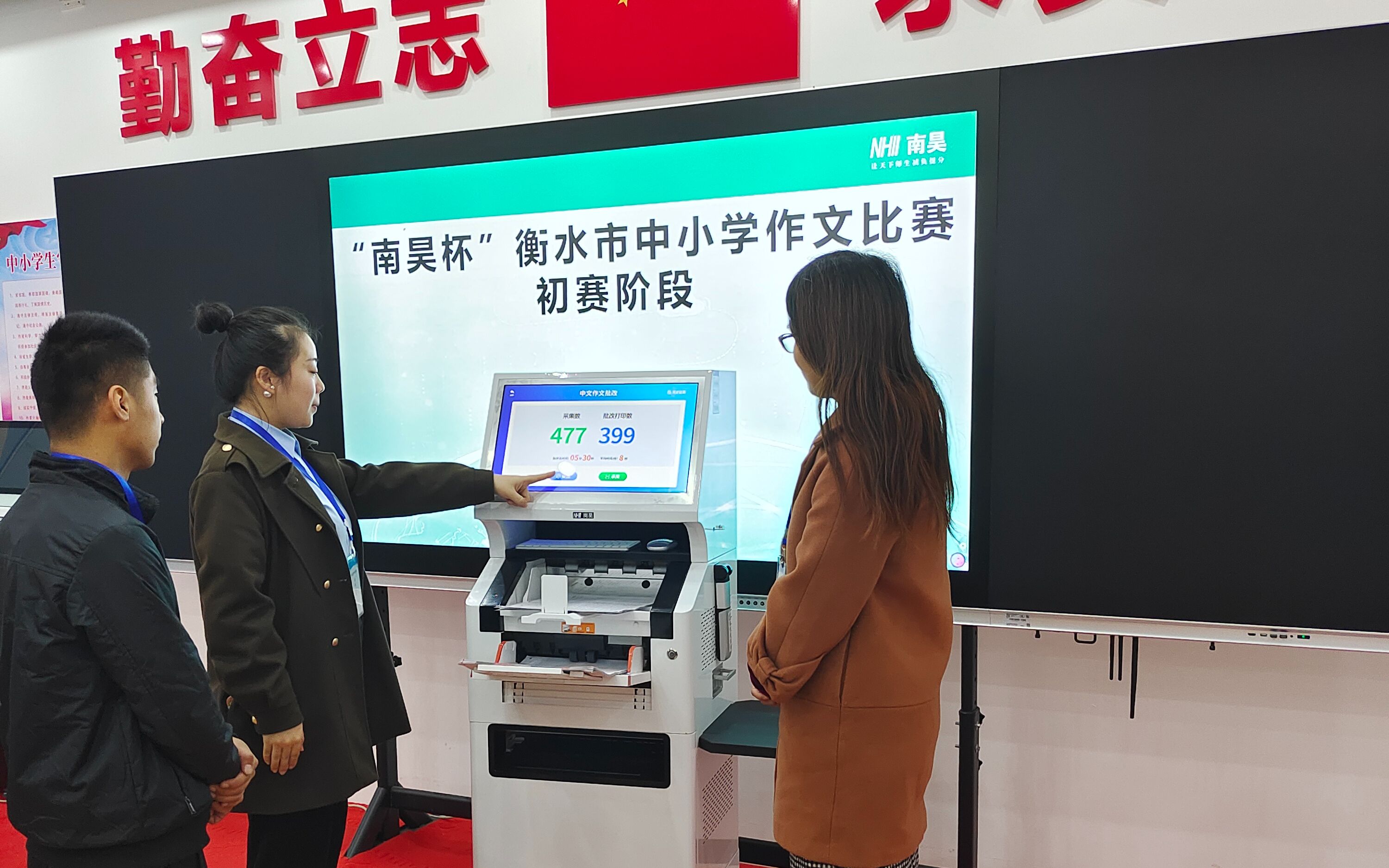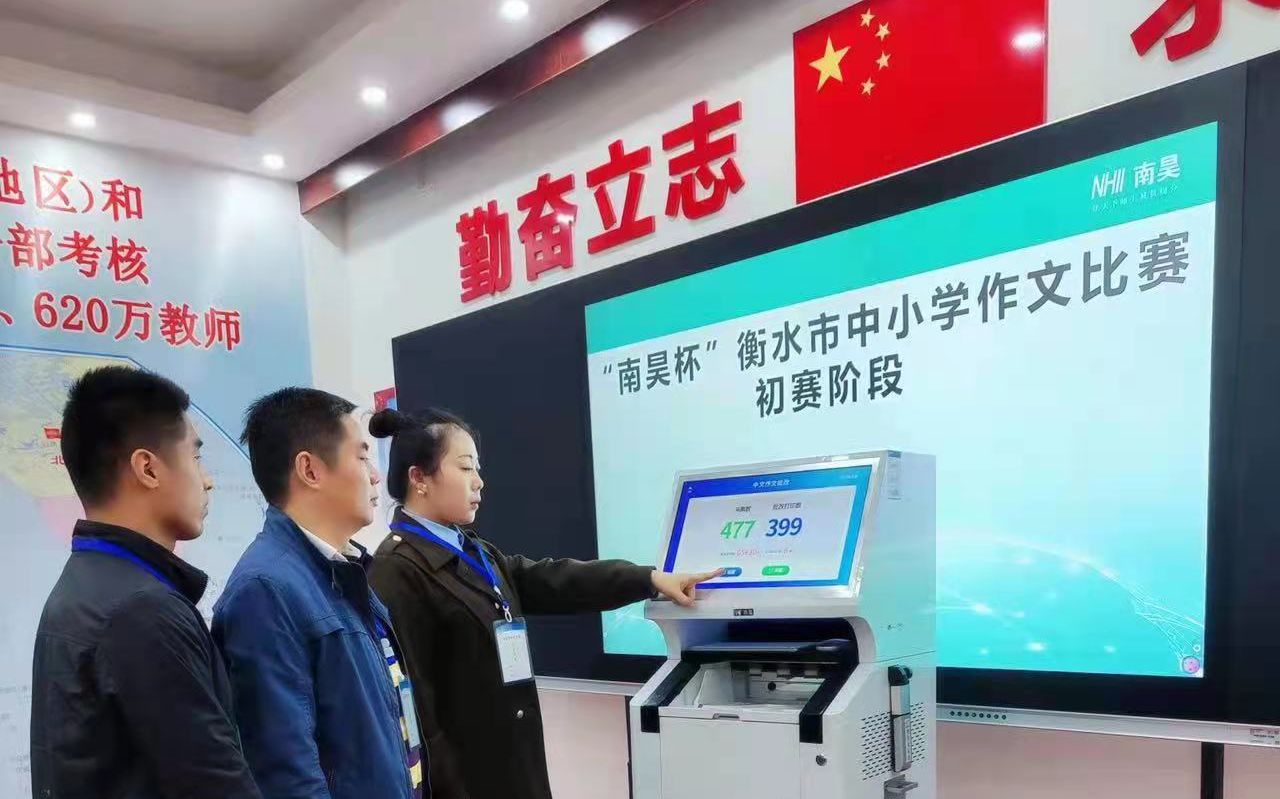 組委會(huì)測(cè)評(píng)組在使用設(shè)備對(duì)作文進(jìn)行評(píng)分