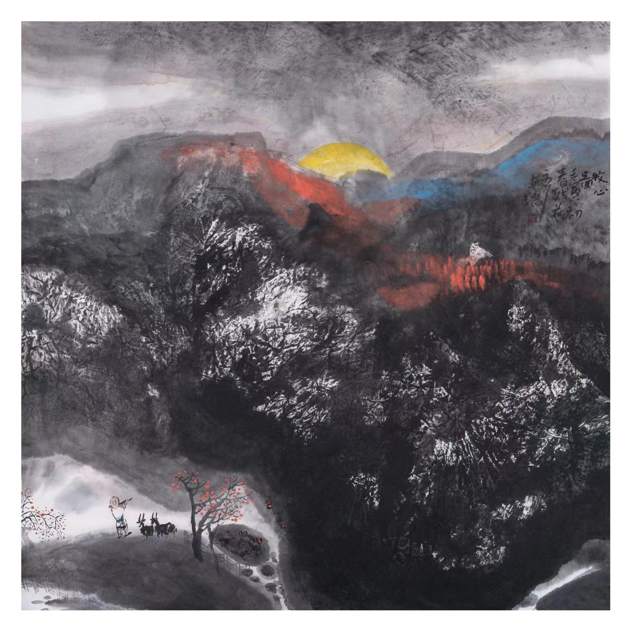 東瑞者,心地簡純,不惑之年不乏三分稚氣,談吐之中時露率直天真。畫如其人。觀東瑞作畫,無所謂凝神靜慮顧盼再三,憑成竹在胸,不拘時間地點人后人前,小到指間玉璧,大至丈二匹宣,信手揮灑,下筆隨天意,化墨任自然……