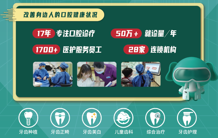 可恩口腔自2006年成立以來堅持踐行標準口腔診療服務,全心全力致力于大眾口腔健康,多年來注重醫療團隊建設,引進國內外先進的醫療設備,探索醫療技術的提升,打造標準化就診服務,歷經17年,遍及全國8座城市,擁有連鎖機構28家,發展成為全國掛牌上市連鎖口腔醫療集團,年總就診量超50萬人次。
