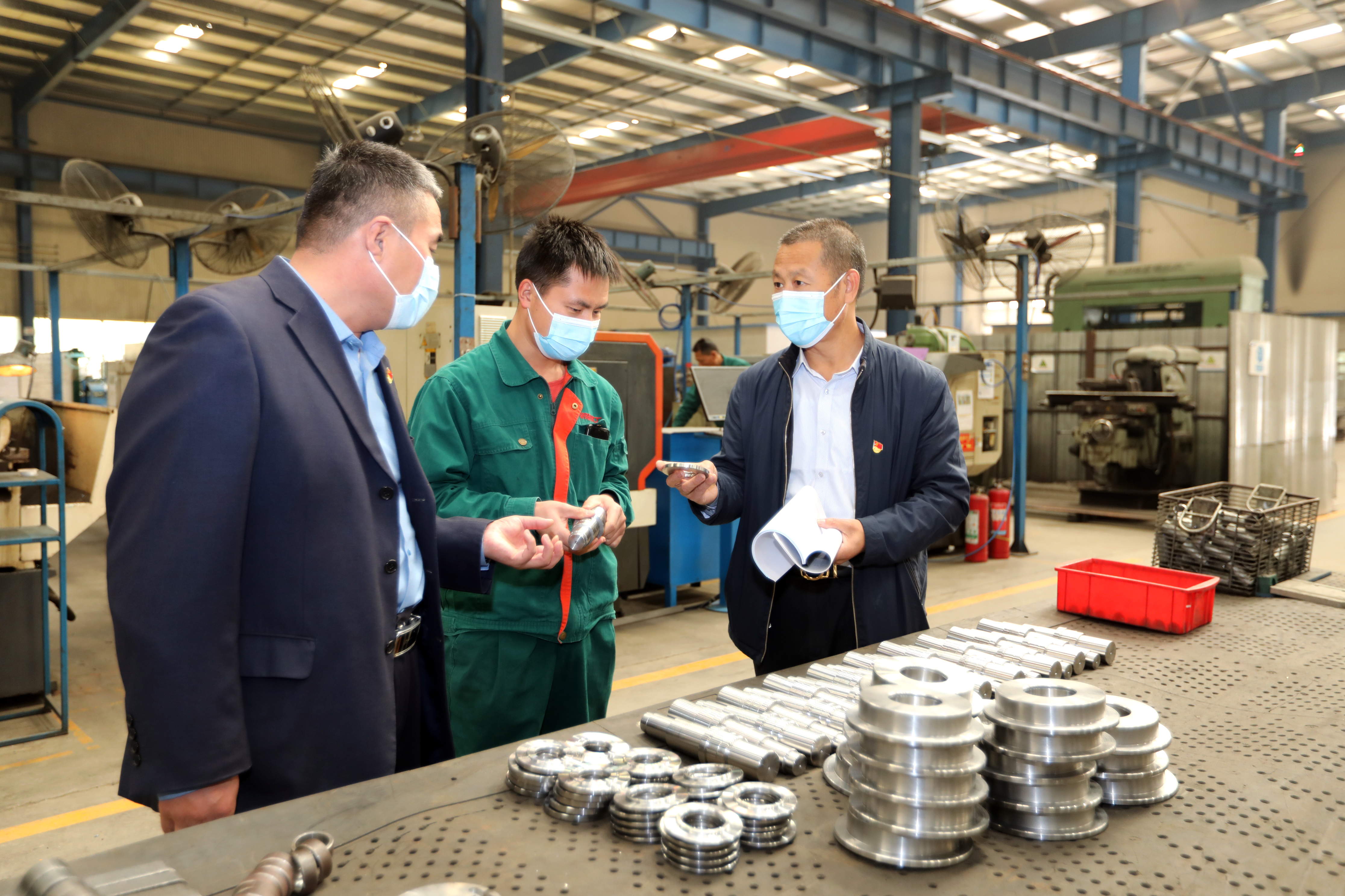今年以來,安平縣出臺15條惠企政策對絲網企業在招商引資、設備引進、外貿出口、科技創新等方面給予資金支持獎勵,進一步促進絲網產業集群轉型升級。圖為安平高新區工作人員到企業宣傳政策。