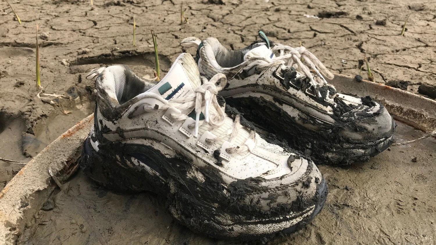 拍攝衡水湖鳥類后記者泥濘的鞋。冀州區融媒體中心供圖