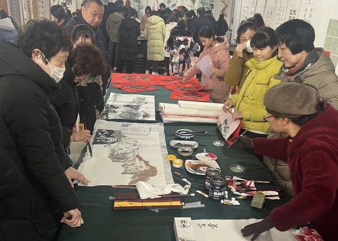 參觀者駐足欣賞書法繪畫作品。李曉宇 攝