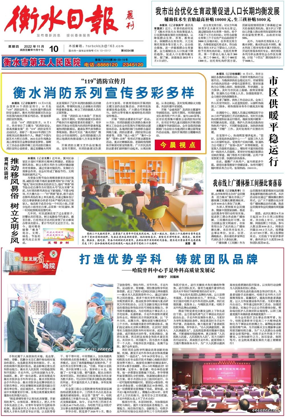 作為全市醫(yī)療衛(wèi)生事業(yè)的領(lǐng)軍者,如今,哈院黨委將學(xué)習(xí)黨的二十大精神成果轉(zhuǎn)化為干事創(chuàng)業(yè)的拼搏之力,凝聚起奮進(jìn)新征程的精氣神,為開創(chuàng)衡水衛(wèi)生健康事業(yè)新局面貢獻(xiàn)哈院力量,為廣大人民群眾生命健康安全保駕護(hù)航。哈院手足外科落子于關(guān)鍵處,以勢如破竹之力,加壓奮進(jìn)、細(xì)照篤行,在全院高質(zhì)量發(fā)展的大道上鏗鏘前行!