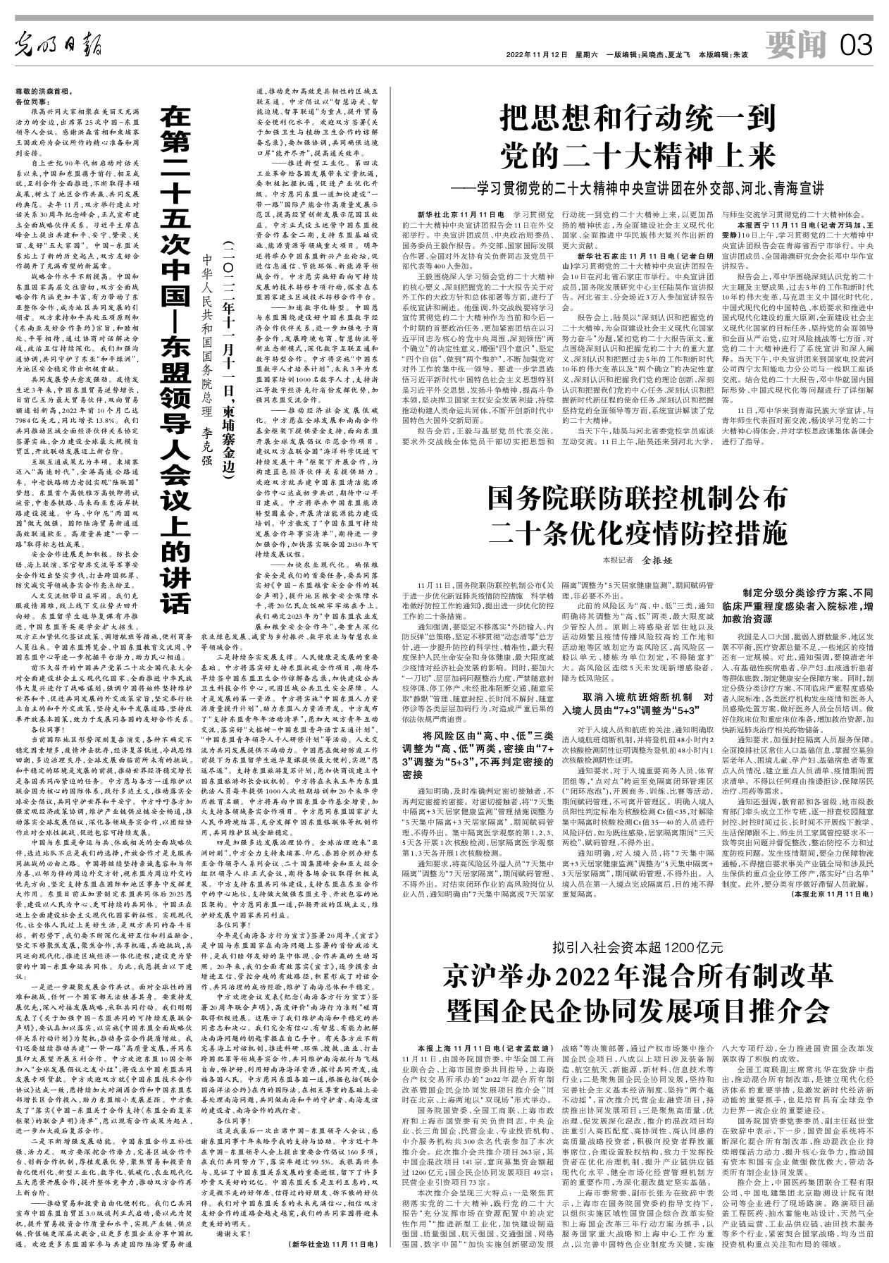 11月11日,國務院聯防聯控機制公布《關于進一步優化新冠肺炎疫情防控措施科學精準做好防控工作的通知》,提出進一步優化防控工作的二十條措施。