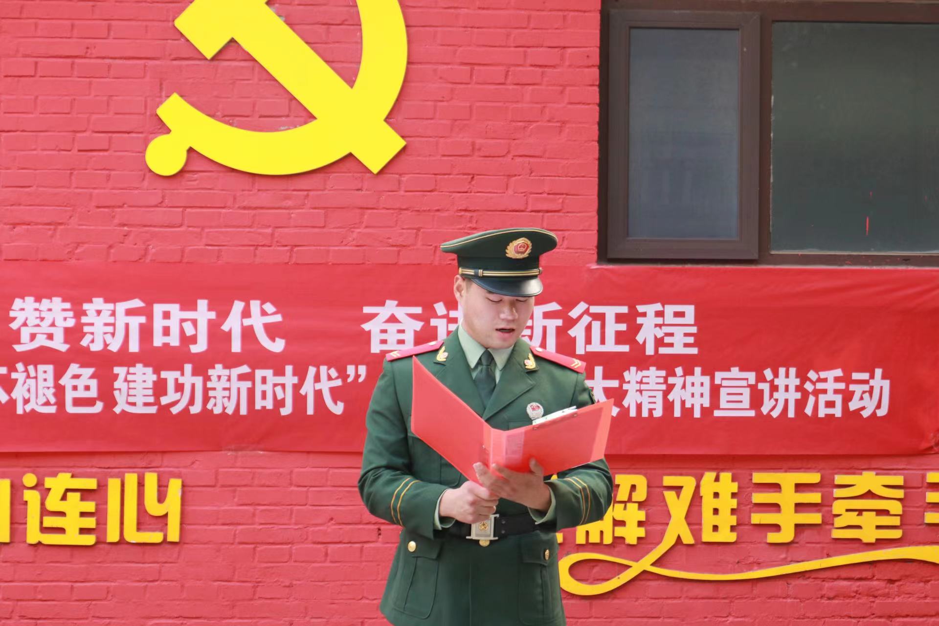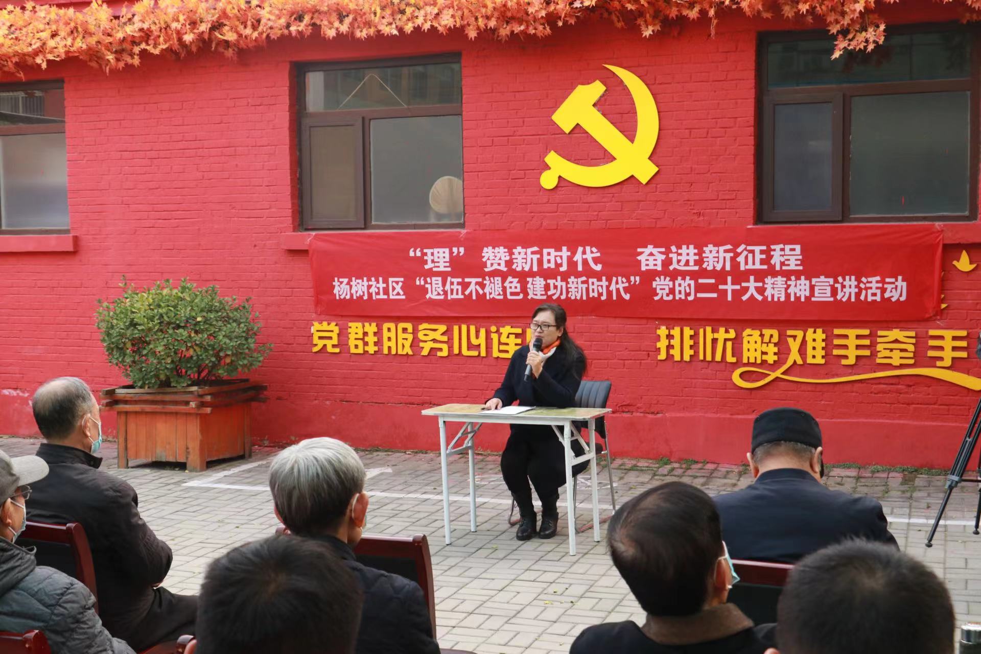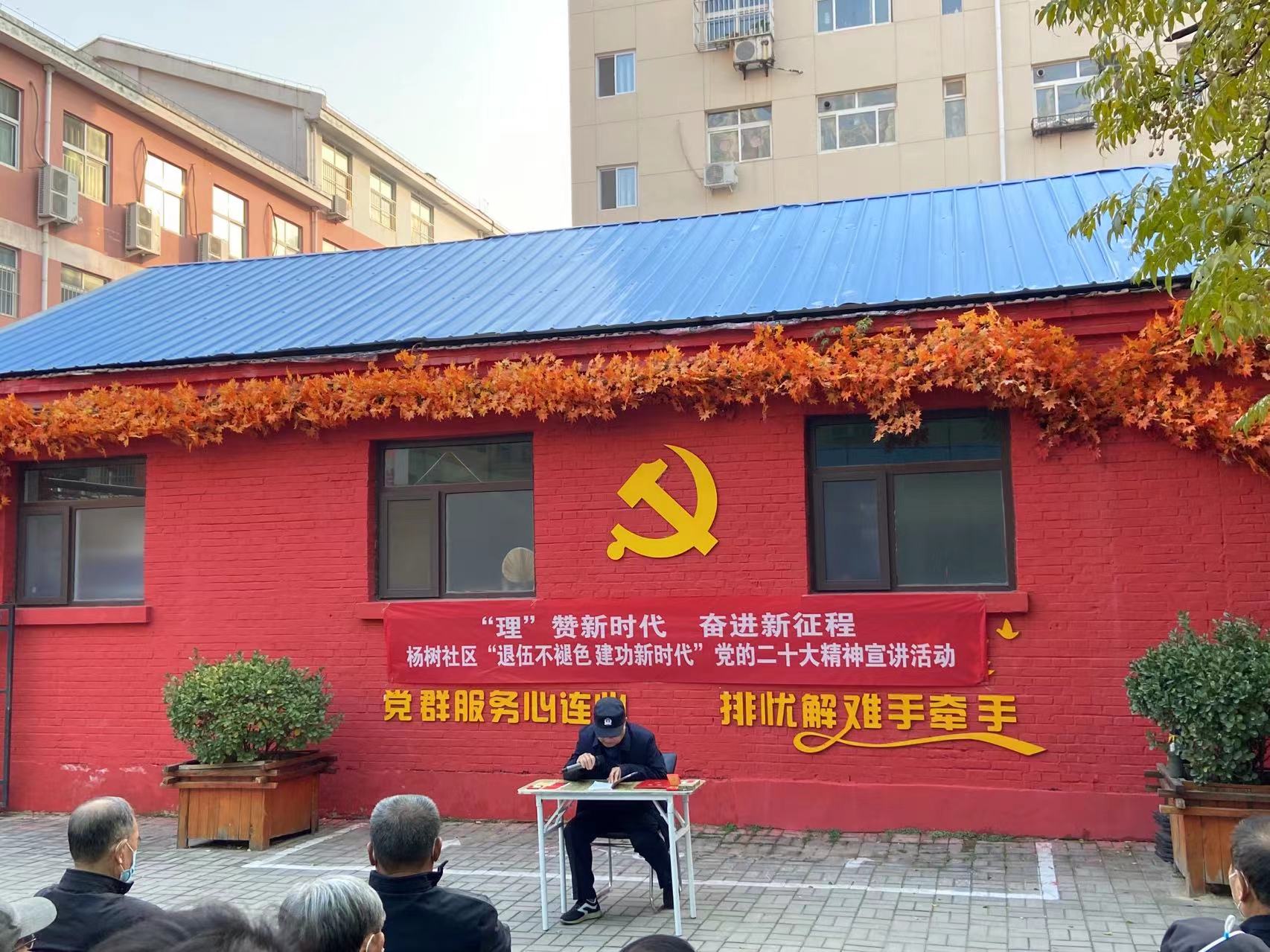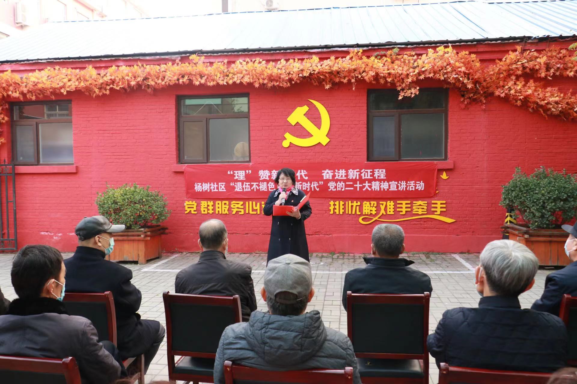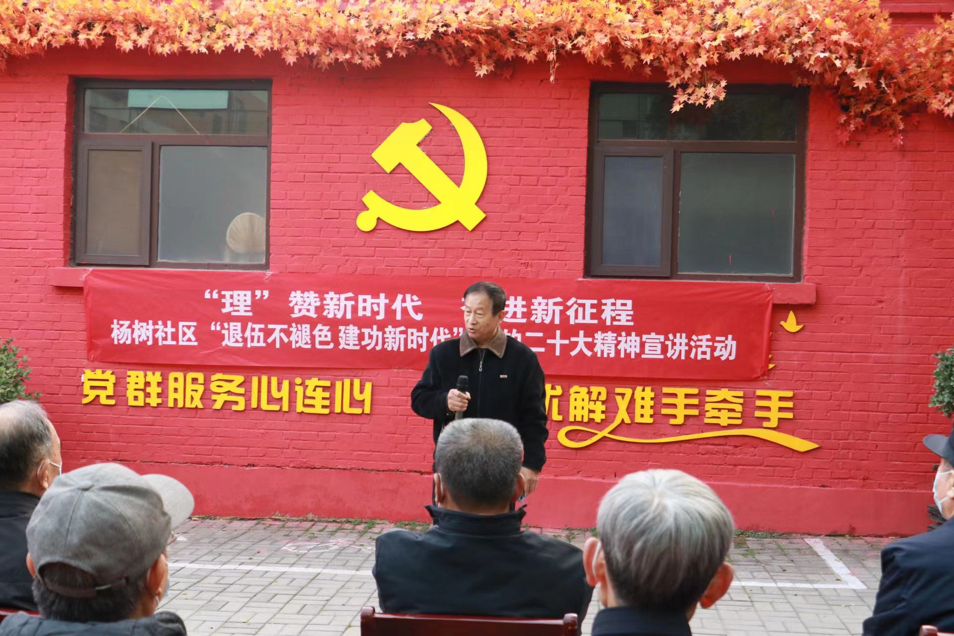 “在戰(zhàn)爭(zhēng)年代,我和戰(zhàn)友們穿越槍林彈雨;在和平年代,我見(jiàn)證了祖國(guó)繁榮強(qiáng)盛。黨的二十大勝利召開(kāi),我最大的感受就是,在黨的好政策指引下,老百姓今后的生活將更幸福、更有奔頭。”宣講現(xiàn)場(chǎng),王增栓結(jié)合自身經(jīng)歷,用簡(jiǎn)潔樸實(shí)的語(yǔ)言動(dòng)情講述了對(duì)越自衛(wèi)反擊戰(zhàn)艱苦的戰(zhàn)場(chǎng)生活和激烈的戰(zhàn)斗過(guò)程,向在場(chǎng)的退役軍人再現(xiàn)了那段崢嶸歲月。同時(shí),鼓勵(lì)大家不忘初心、牢記使命,堅(jiān)定不移聽(tīng)黨話、跟黨走,踔厲奮發(fā)、勇毅前行。質(zhì)樸的語(yǔ)言和飽滿的愛(ài)國(guó)熱情深深感染著每一個(gè)人,贏得大家的陣陣掌聲。隨后,退役大學(xué)生士兵程歡等人朗誦了詩(shī)歌《新時(shí)代贊歌》,退役軍人家屬趙文婷朗讀了自創(chuàng)的《二十大頌歌》《觀全員核酸有條不紊有感》兩首詩(shī)歌。最后,在楊樹(shù)社區(qū)居委會(huì)副主任張志選的帶領(lǐng)下,全體人員重溫了入黨誓詞。
