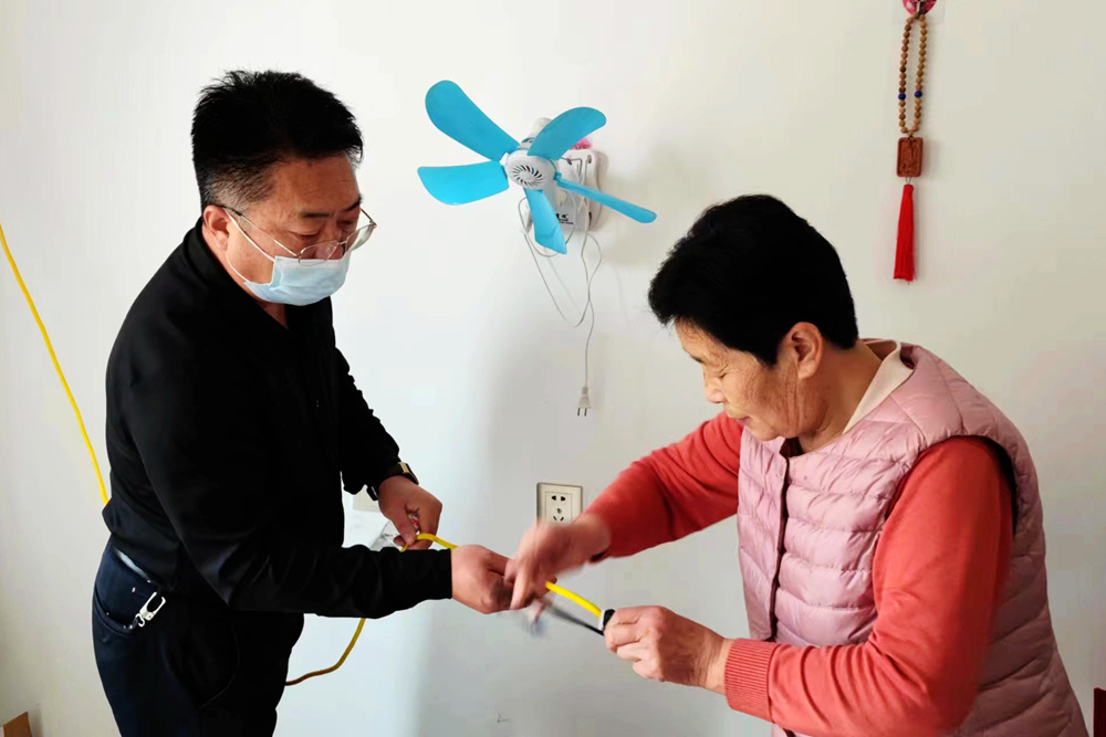 工作人員(左)為群眾檢查線路是否安全。張海聰 攝