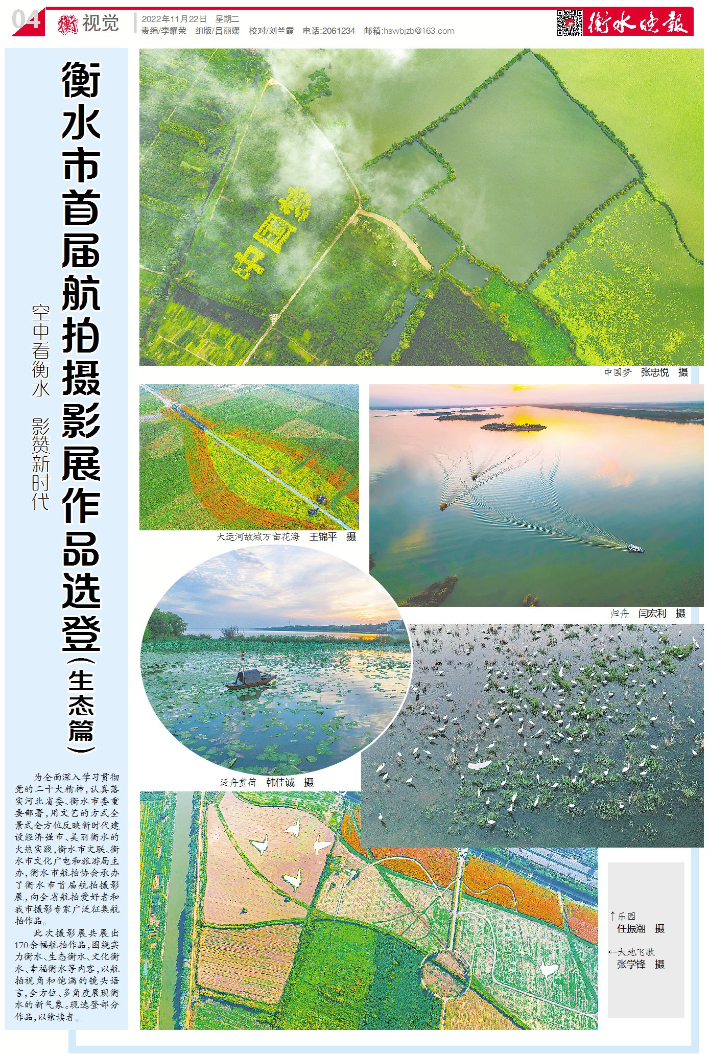 為全面深入學習貫徹黨的二十大精神,認真落實河北省委、衡水市委重要部署,用文藝的方式全景式全方位反映新時代建設(shè)經(jīng)濟強市、美麗衡水的火熱實踐,衡水市文聯(lián)、衡水市文化廣電和旅游局主辦,衡水市航拍協(xié)會承辦了衡水市首屆航拍攝影展,向全省航拍愛好者和我市攝影專家廣泛征集航拍作品。