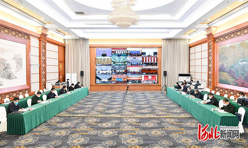 11月27日晚,省應對新冠肺炎疫情工作領導小組會議暨全省視頻調度會議在石家莊召開。這是會議現場。 河北日報記者趙海江攝