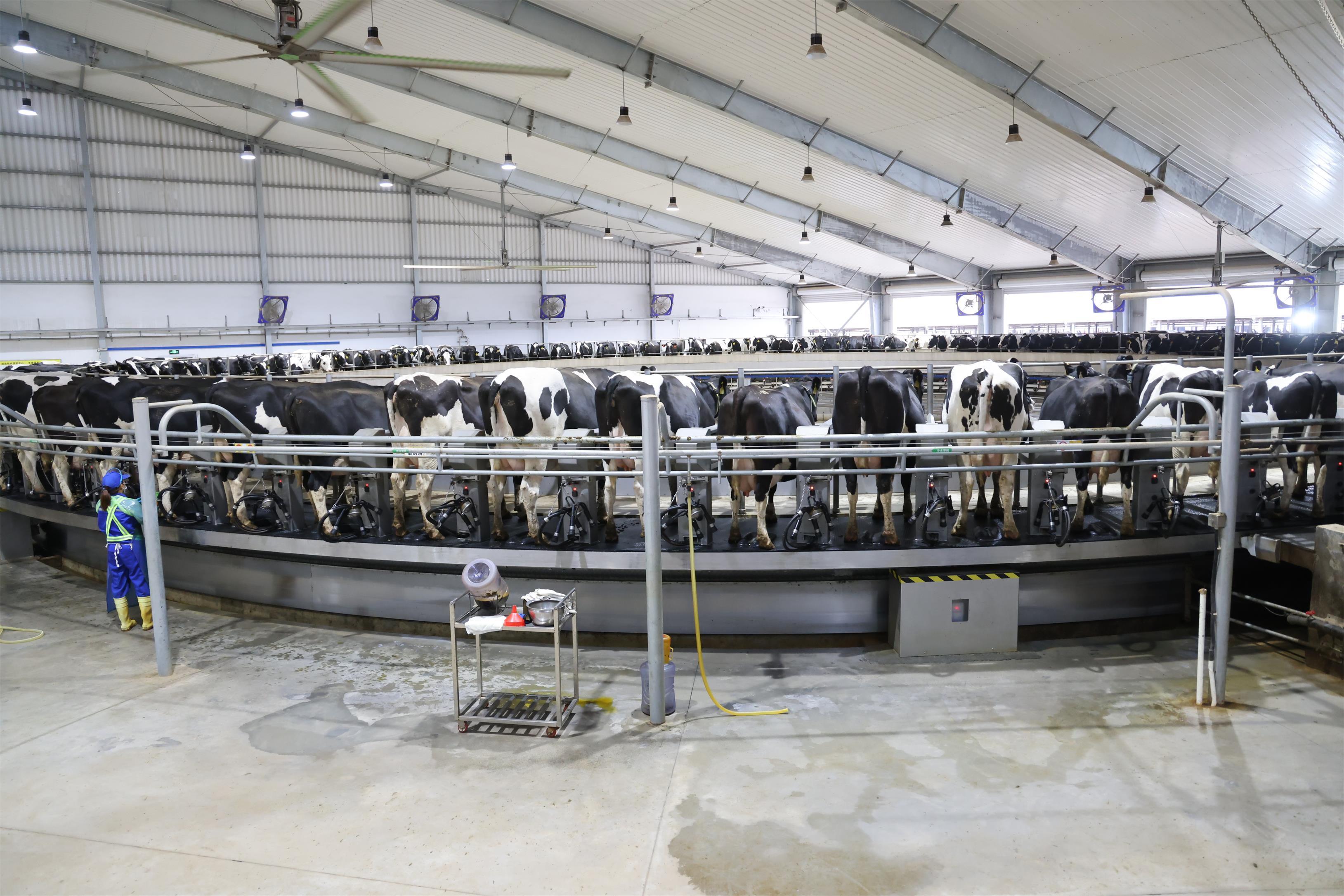 故城縣奶牛龍頭企業通過建設數智化牧場和工廠,搭建青貯收購、牛群SCR管理、線上奶車溯源、自動化生產線、智能物流、數智化用戶運營等系統,不斷推進數字化與產業鏈上中下游各個環節高度融合。同時,發揮國家奶牛核心育種基地優勢,穩步推進標準化健康養殖、智慧養殖,持續提升產業化水平,力爭在2025年建成年產20萬噸的省級重點奶業基地。