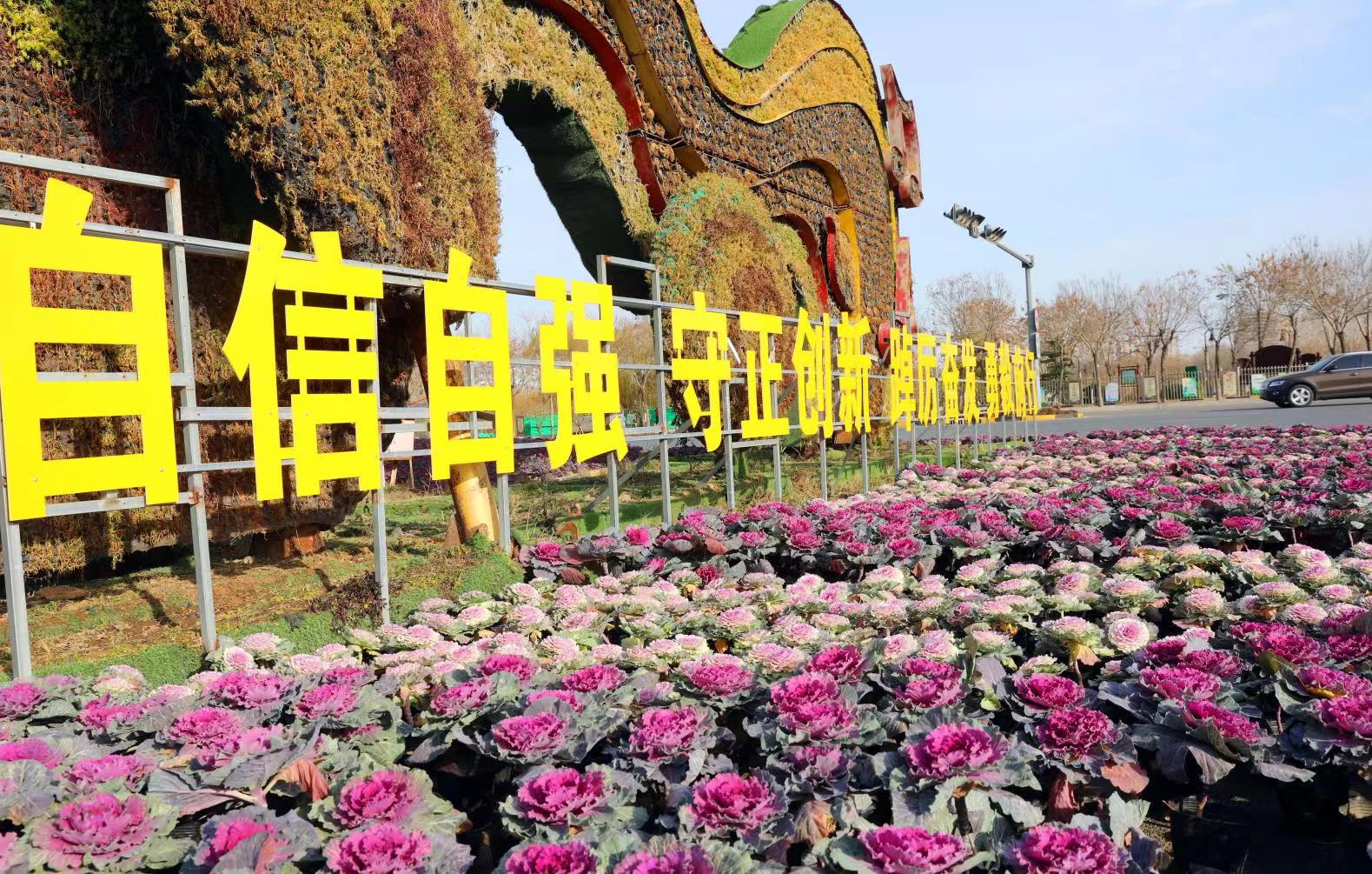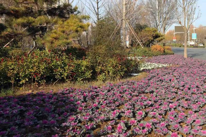 隨著氣溫不斷降低,不耐寒的花卉逐漸枯萎,為豐富衡水市區(qū)冬季園林景觀環(huán)境,近日,衡水市園林中心開展增花添彩“換妝”工作,在市區(qū)街頭集中栽植20萬余株羽衣甘藍(lán),為略顯蕭瑟的初冬增添了一抹靚麗。