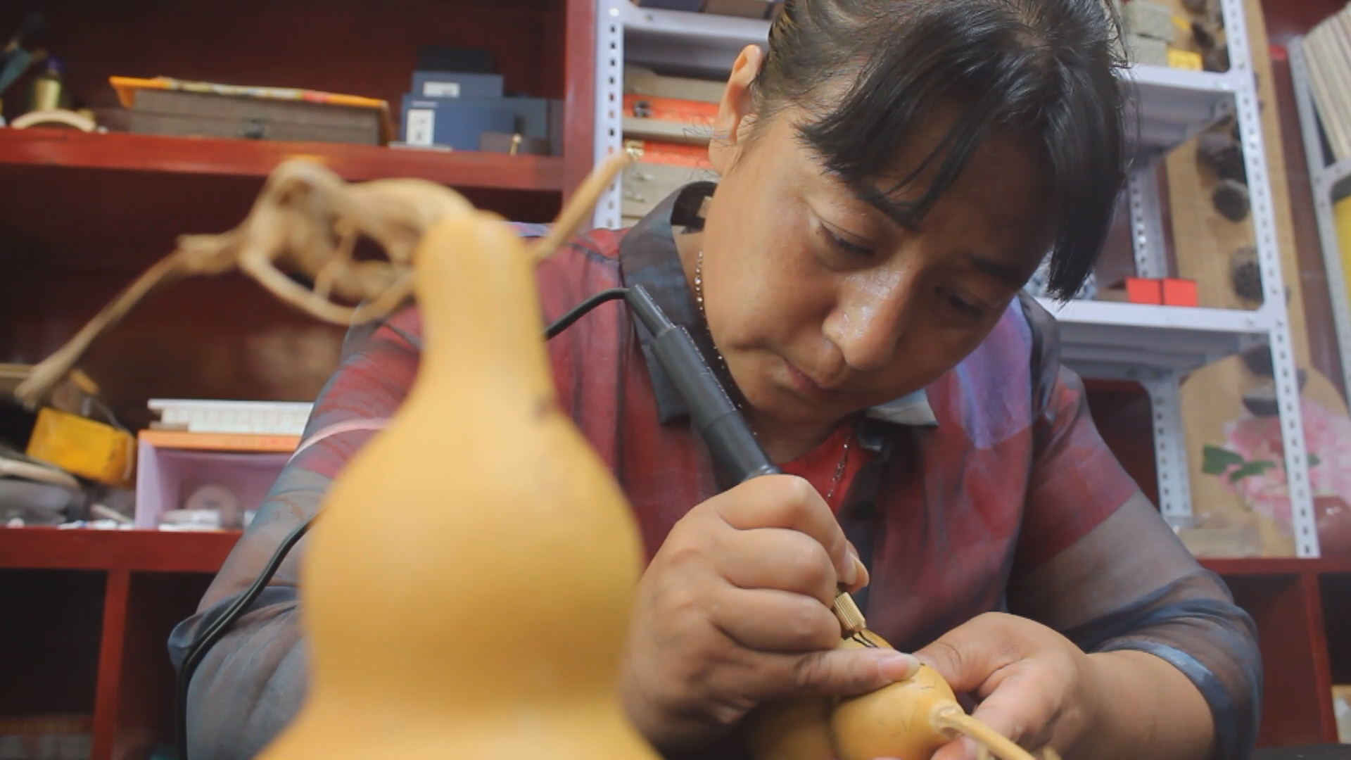 47歲的王維靜為河北省工藝美術(shù)家,非遺傳統(tǒng)烙燙畫工藝第五代傳承人,還是一位多產(chǎn)的工藝美術(shù)家,她于2020年撰寫并出版《圣姑傳說》,她的葫蘆烙畫作品于2021年代表衡水參加“2021一帶一路長城國際民間藝術(shù)節(jié)”,同年代表河北省非遺分別參加蘇州國際博覽會舉辦的大運河非遺文化展覽和武漢國際博覽會首屆非遺展覽等。