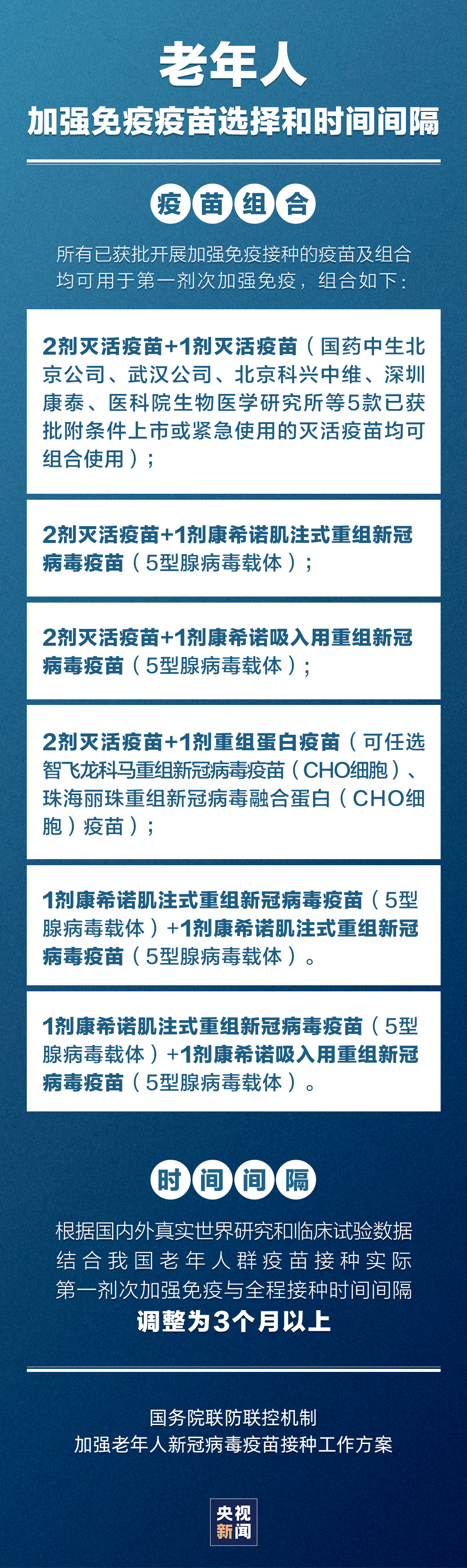 《加強(qiáng)老年人新冠病毒疫苗接種工作方案》明確老年人的疫苗接種和一般人群疫苗接種相比在安全、便捷、不良反應(yīng)監(jiān)測(cè)方面都要有專門的措施。特別是在加強(qiáng)針接種上,詳細(xì)列出了不同技術(shù)路線的疫苗組合推薦。