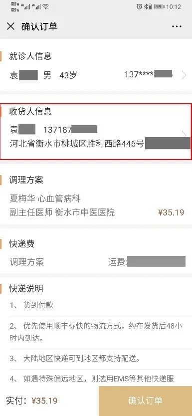 1、支付訂單時(shí)認(rèn)真填寫郵寄地址,等待送藥上門。目前快遞為“順豐速運(yùn)”,郵費(fèi)到付;