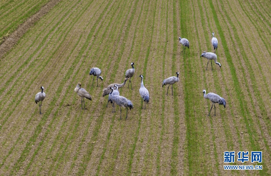 離開冰面,灰鶴邁著悠閑的步子在田間嬉戲覓食,給冬日的農田增添了別樣的生機。新華網發 陳康 攝