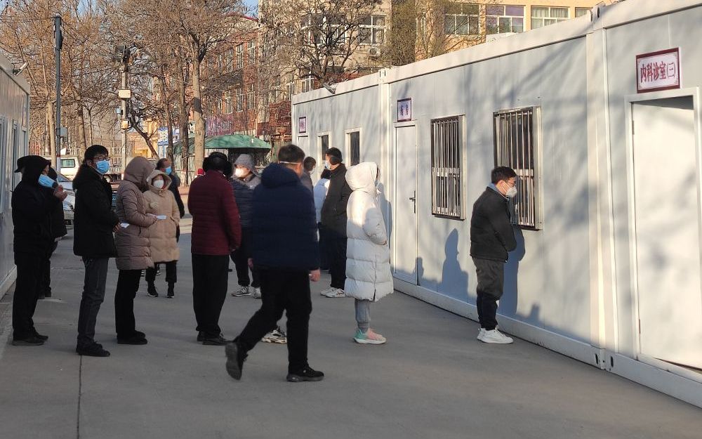 在河北成安縣,針對發熱門診人員密集的情況,醫院將發熱門診搬到了大街邊。
