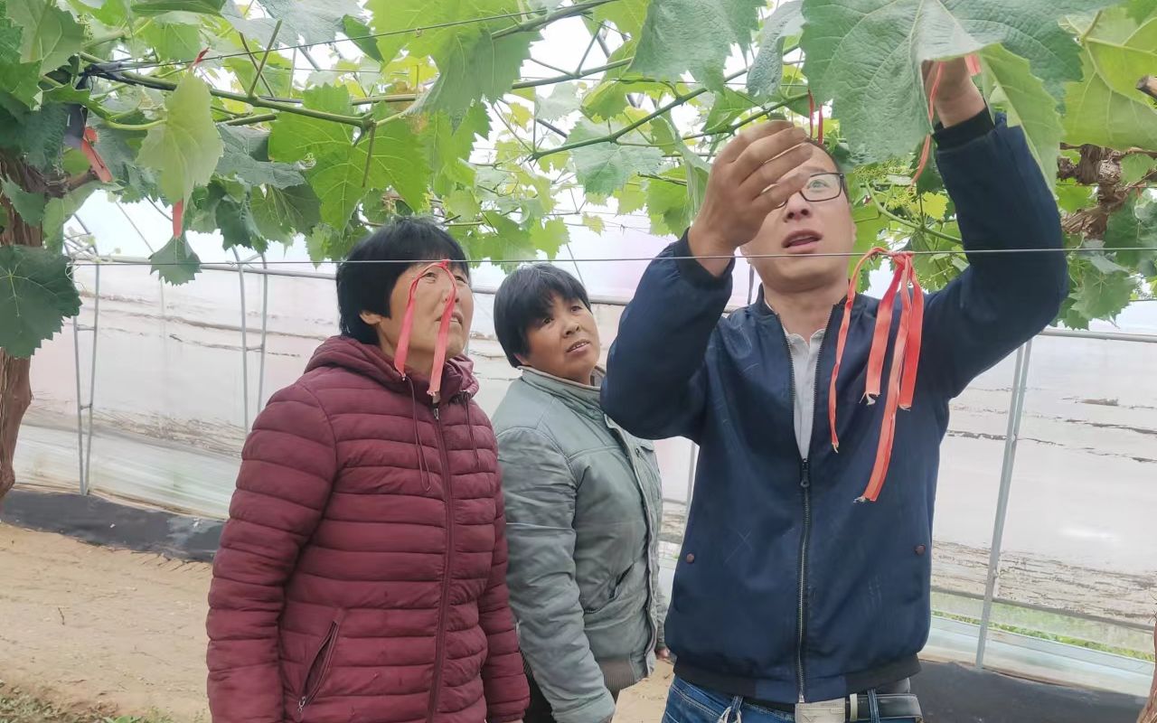 現在,趙見行和周邊8個村簽訂了技術指導合同,不光針對葡萄種植,還對溫室蔬菜、陸地果樹等進行農技指導。“我們把‘特聘農技員聯心卡’貼在每個村的公示欄里,24小時不敢關機,隨時都有種植戶電話、微信咨詢。”為了更好地服務群眾,趙見行白天進大棚,晚上忙學習,“每周五都有葡萄產業種植體系的線上講座,我們也要把最新的種植技術傳授給種植戶。”