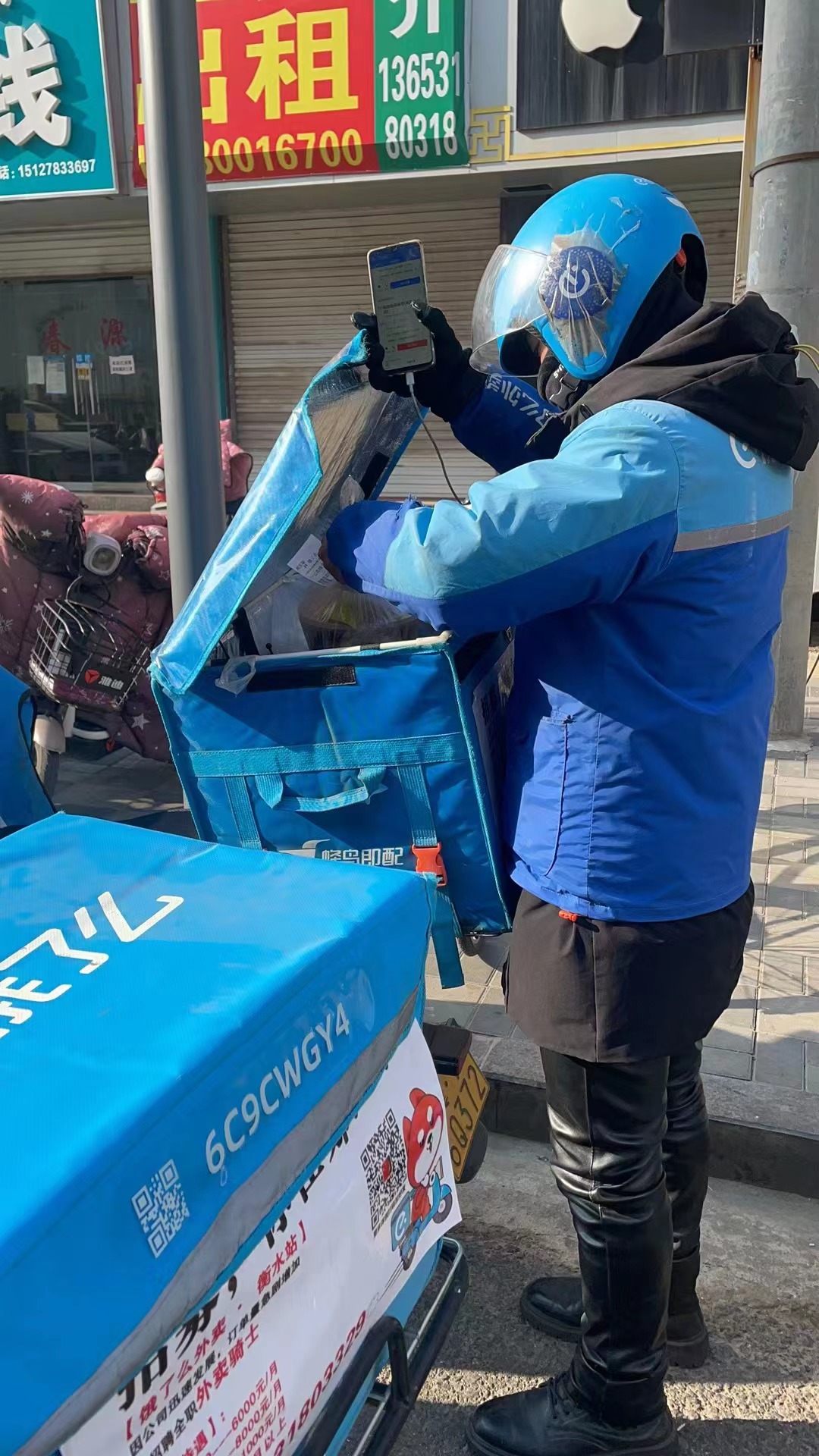 12月30日上午10時,杜奎出現在桃城區大慶路與榕花大街交叉口,此時他正在配送一單到海東盛景小區的訂單。不到兩分鐘,杜奎便取到了餐品,在確認餐品完好后,他小心翼翼地放入保溫箱,隨后立刻騎車趕往永安路。