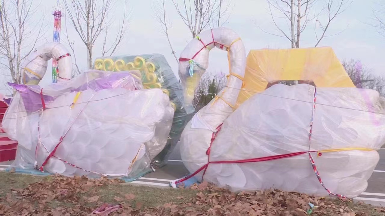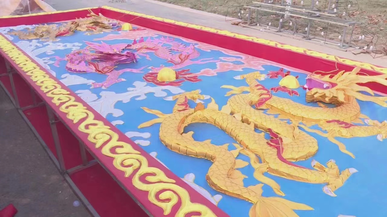 12月29日,記者在衡水湖景區(qū)鴨鴨樂(lè)園內(nèi)看到,盡管天氣寒冷,施工現(xiàn)場(chǎng)卻是一片熱火朝天的景象。工作人員正忙著焊接燈架,擺放各種造型,布線、刷膠……一道道工序有條不紊。眼前,各種各樣的彩色花燈已經(jīng)初具雛形。“這是九龍壁,這是兔年大吉、卯兔送福、 二龍戲珠。”現(xiàn)場(chǎng)工作人員笑著說(shuō),花燈是中華傳統(tǒng)年文化的重要元素,寓意吉祥、喜慶,此次花燈會(huì)上,將有30余組中大型彩燈以及百米花燈長(zhǎng)廊大放異彩,為廣大市民帶來(lái)一場(chǎng)豐富多彩、潮味滿滿的新春花燈盛宴。