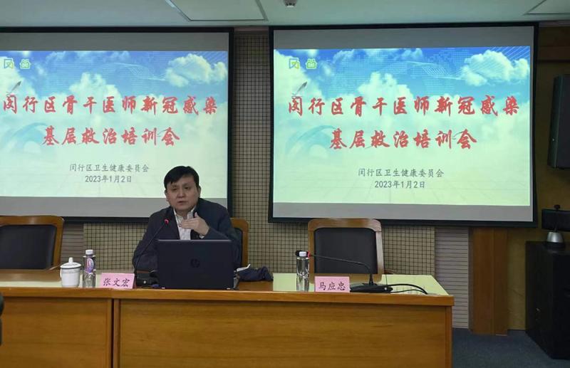 1月1日、2日,國(guó)家傳染病醫(yī)學(xué)中心主任、復(fù)旦大學(xué)附屬華山醫(yī)院感染科主任張文宏連續(xù)兩天來到閔行莘莊社區(qū)衛(wèi)生服務(wù)中心,并為全區(qū)各個(gè)社區(qū)醫(yī)院的骨干醫(yī)務(wù)人員開展了培訓(xùn)。