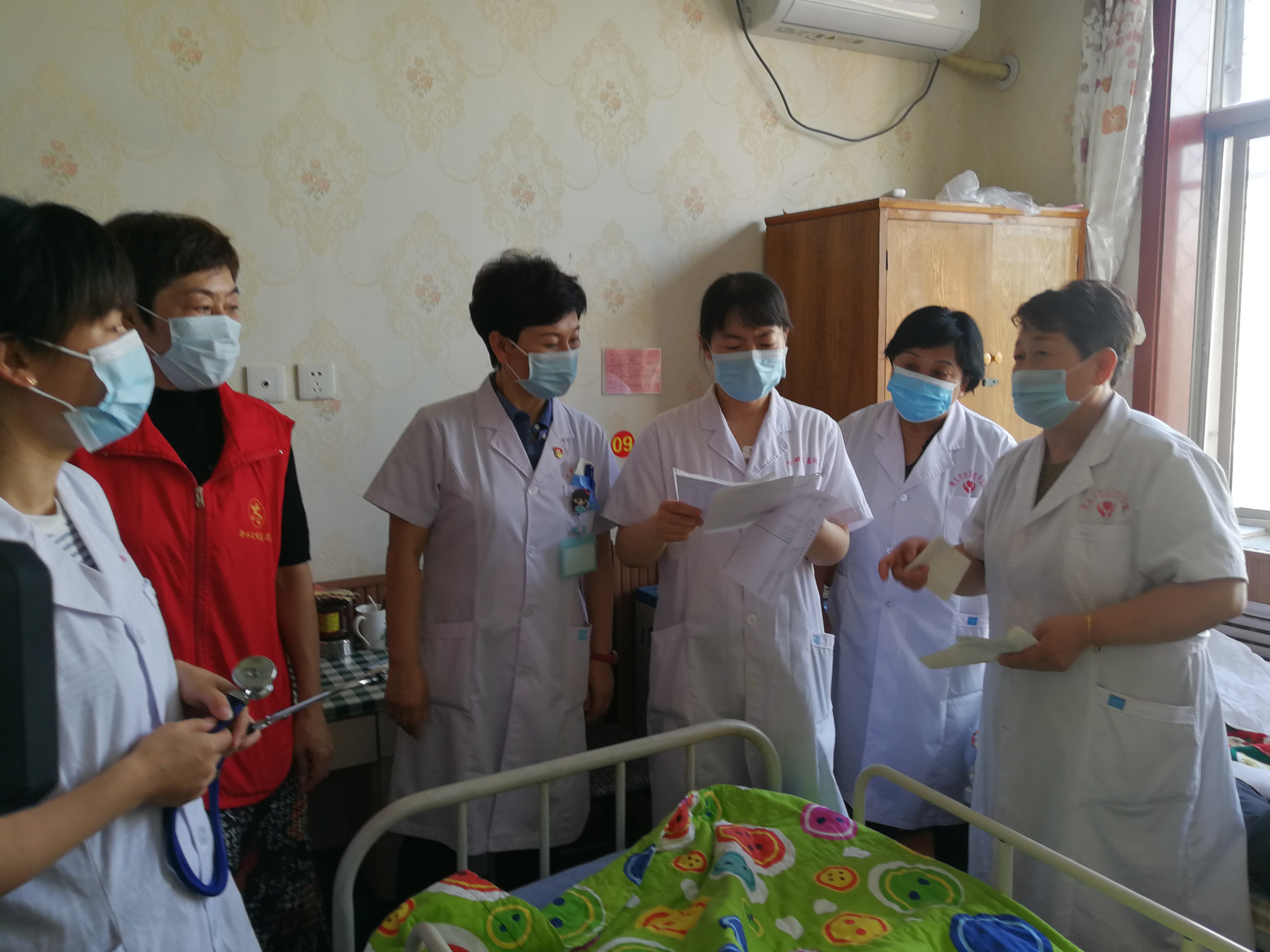 侯麗萍(右三)在桃城區社區老年公寓為臨床治療提供營養支持。