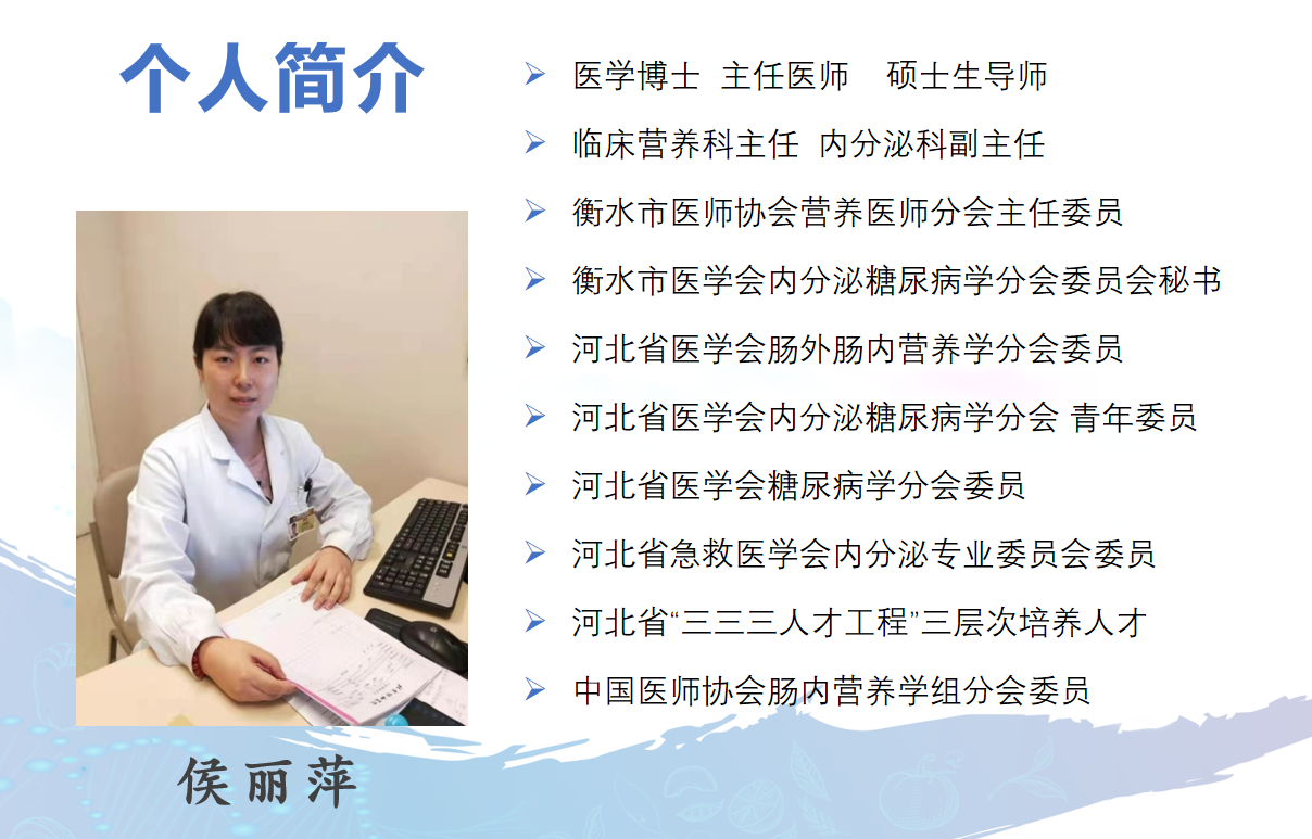 充分發揮哈院作為衡水市營養專業質量管理與控制中心、衡水市醫師協會營養醫師分會等掛靠單位的綜合優勢,哈院臨床營養科以預防、篩查、診斷、治療、康復及人文關懷為主,全方位、多系統的整合營養學模式,成功入選首批河北省臨床營養科規范化示范單位,侯麗萍還因此榮獲2022年度衡水市“巾幗之星”、群眾身邊健康榜樣展示之“健康營養家”等榮譽稱號。
