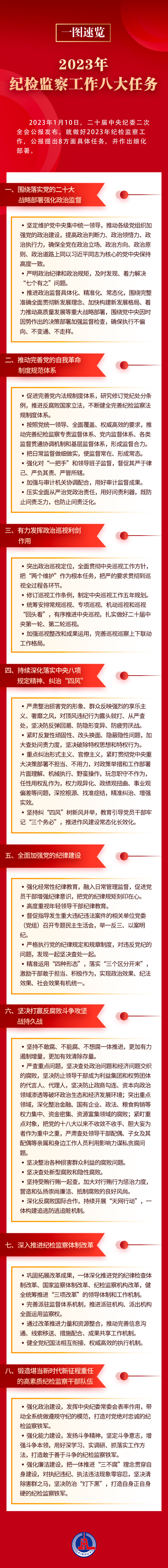 2023年1月10日,二十屆中央紀委二次全會公報發布。就做好2023年紀檢監察工作,公報提出8方面具體任務,并作出細化部署。詳情請看↓↓↓